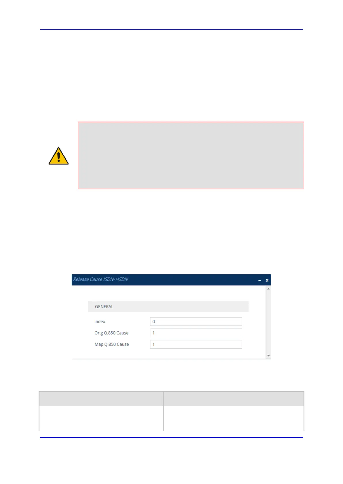 code is not configured in the table, the originally received ISDN cause code is used. If the