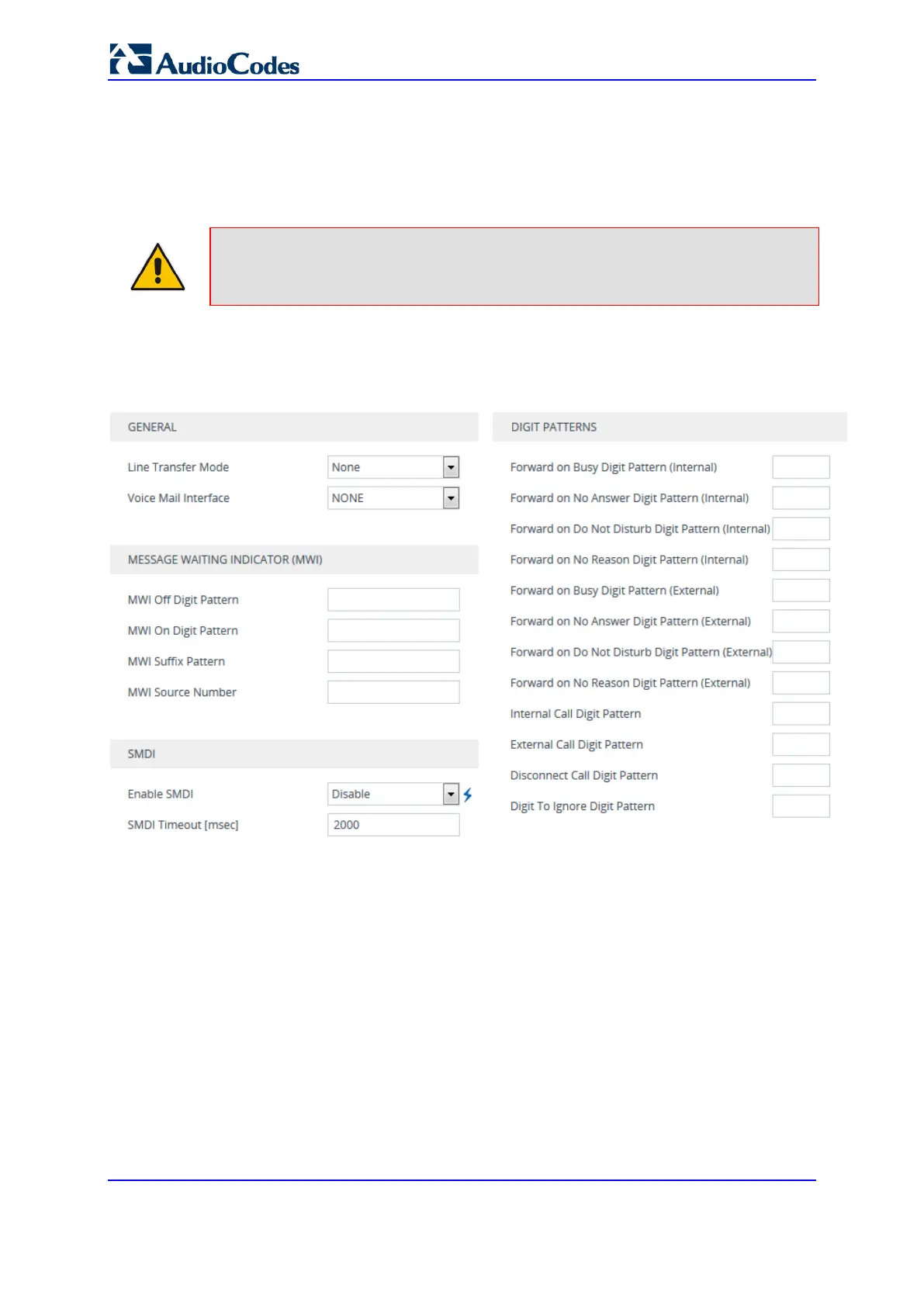 Note: Voice Mail is applicable only to FXO and CAS interfaces.