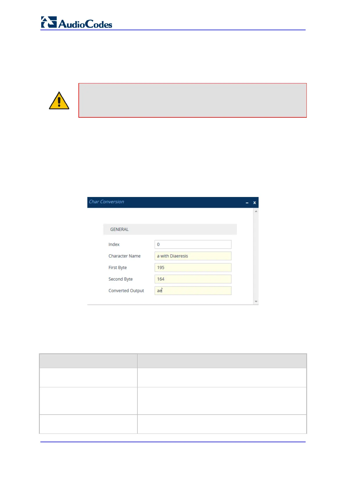 1. Open the Char Conversion table (Setup menu > Signaling & Media tab > Gateway