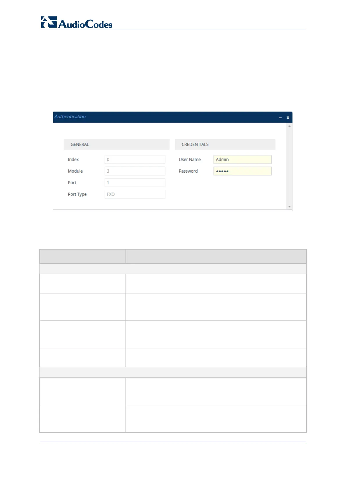 2. Open the Authentication table (Setup menu > Signaling & Media tab > Gateway