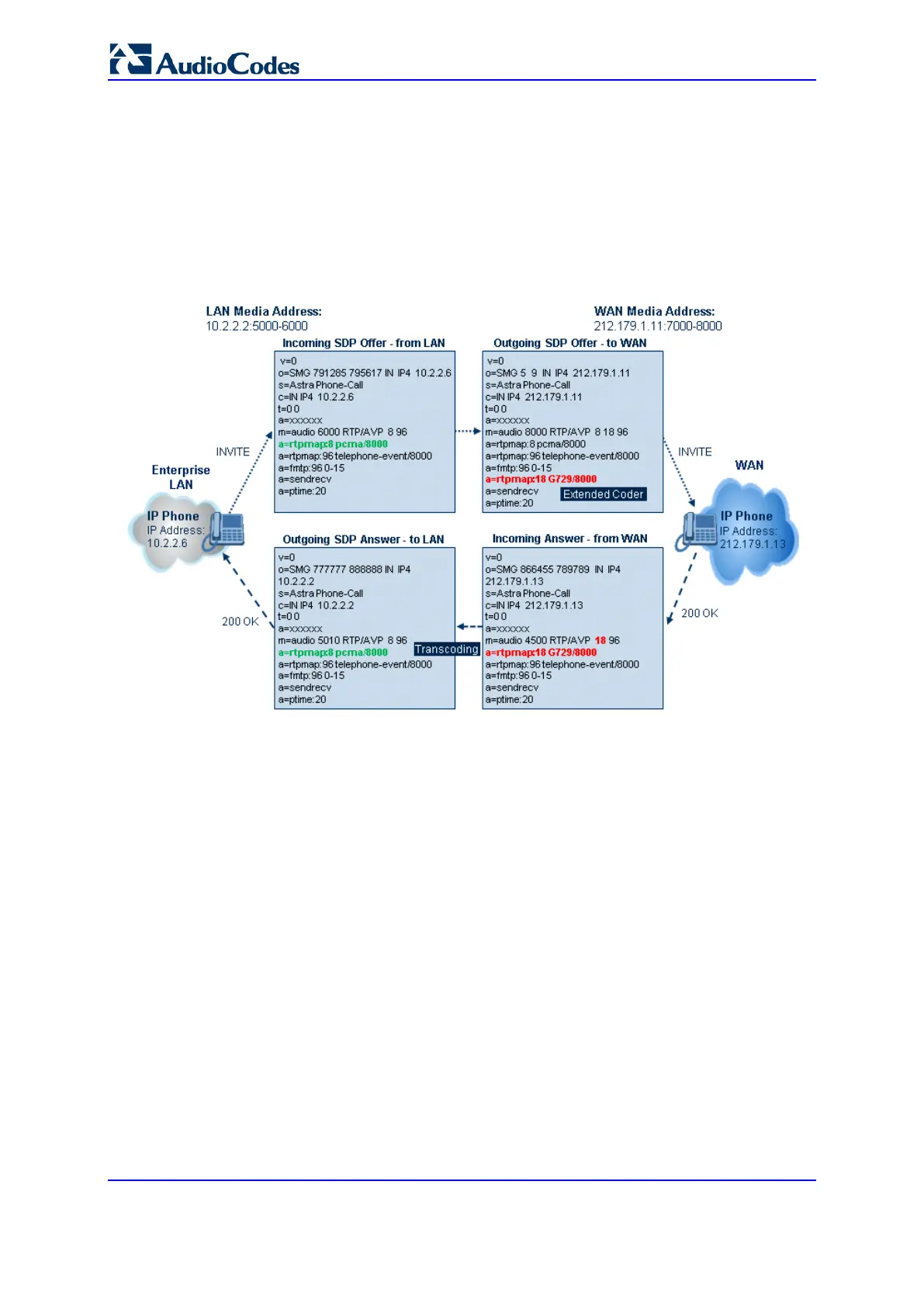 coder. In the outgoing SDP offer on the outbound leg to the WAN IP phone, the device