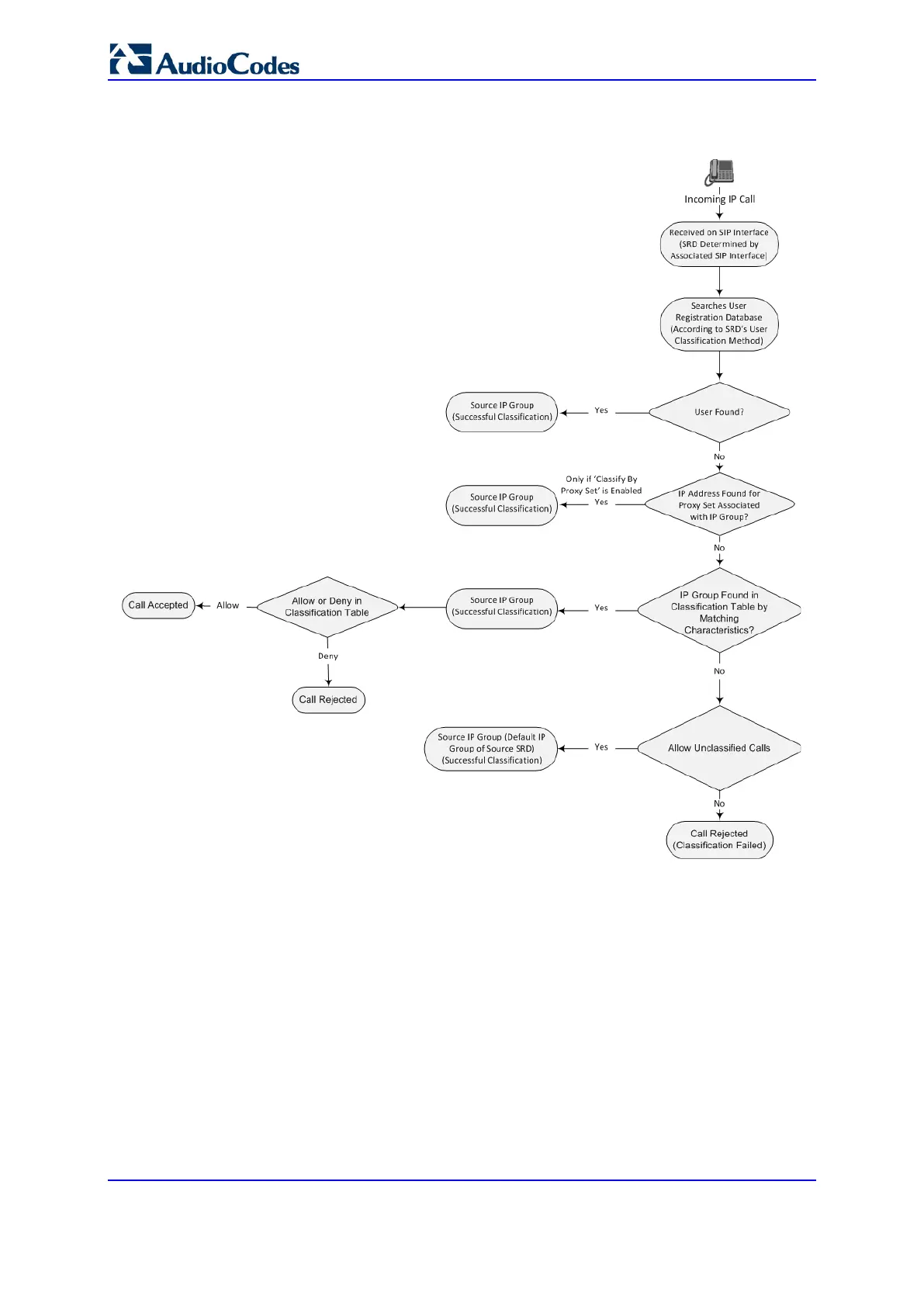 Figure 33-2: Classification Process (Identifying IP Group or Rejecting Call)