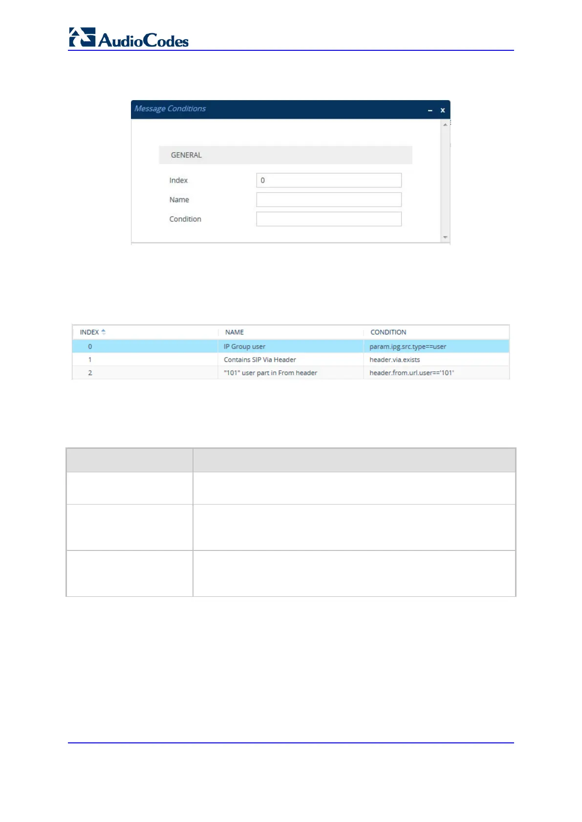 Figure 33-5: Example of Configured SIP Message Conditions
