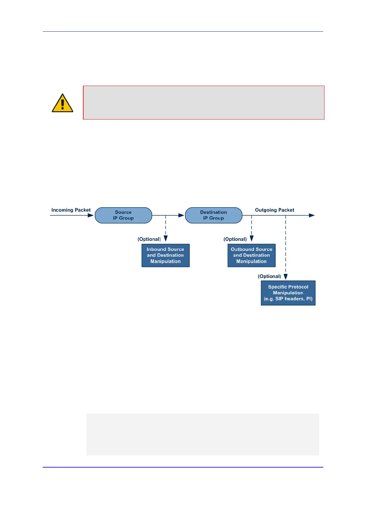 The device supports SIP URI user part (source and destination) manipulations for inbound