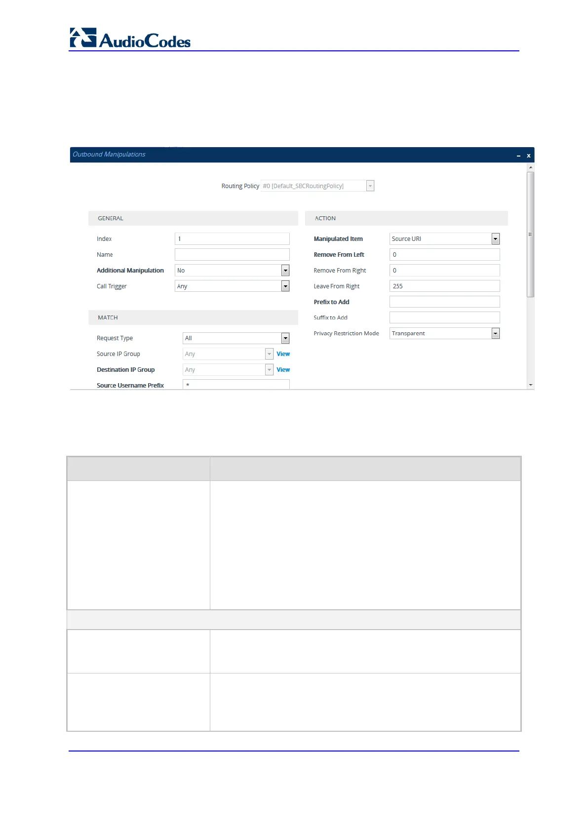 3. Configure an Outbound Manipulation rule according to the parameters described in