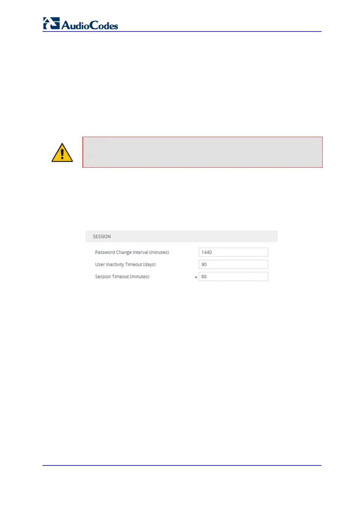 • 'User Inactivity Timeout': If the user has not logged into the Web interface within