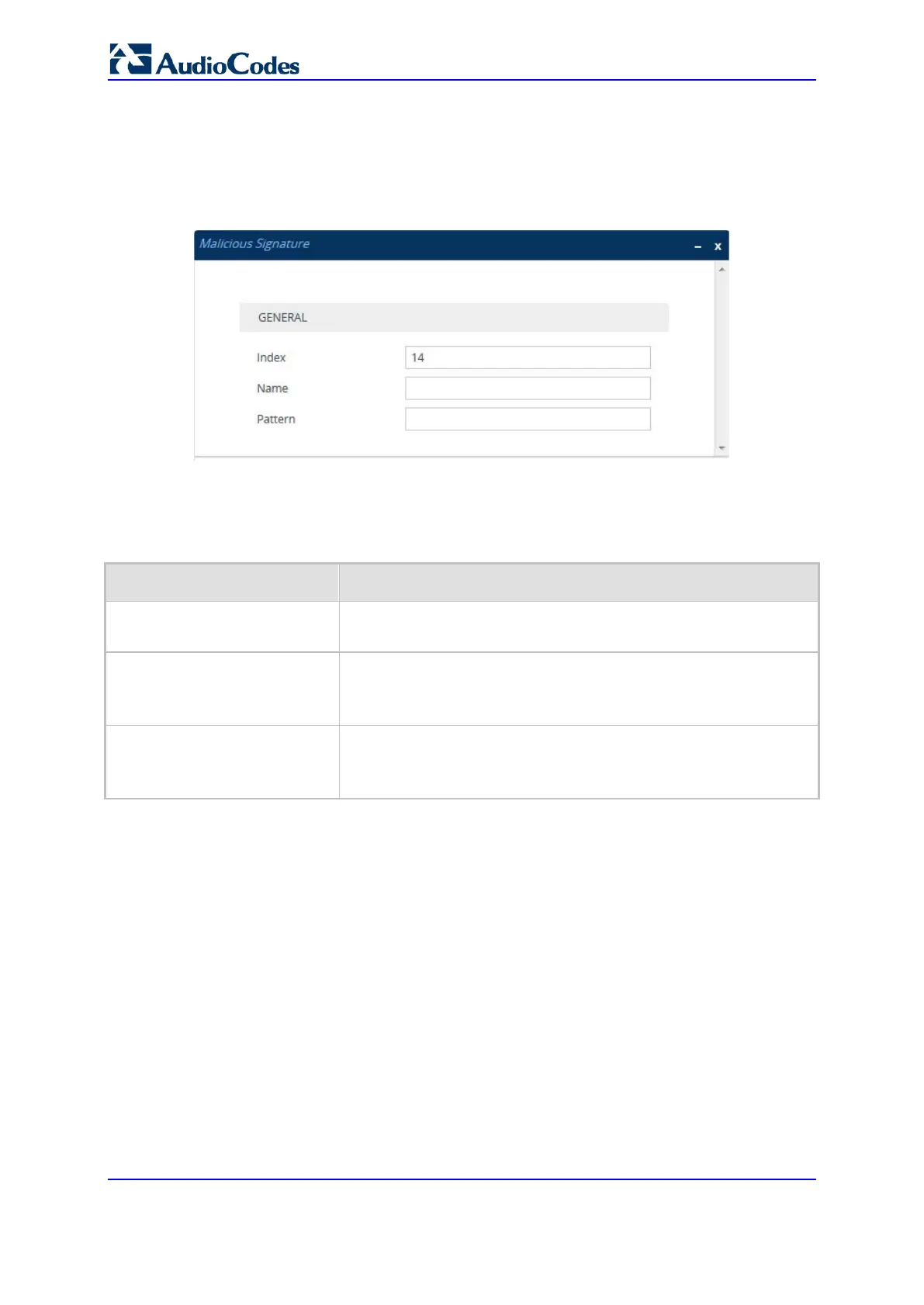 Table 36-1: Malicious Signature Table Parameter Descriptions