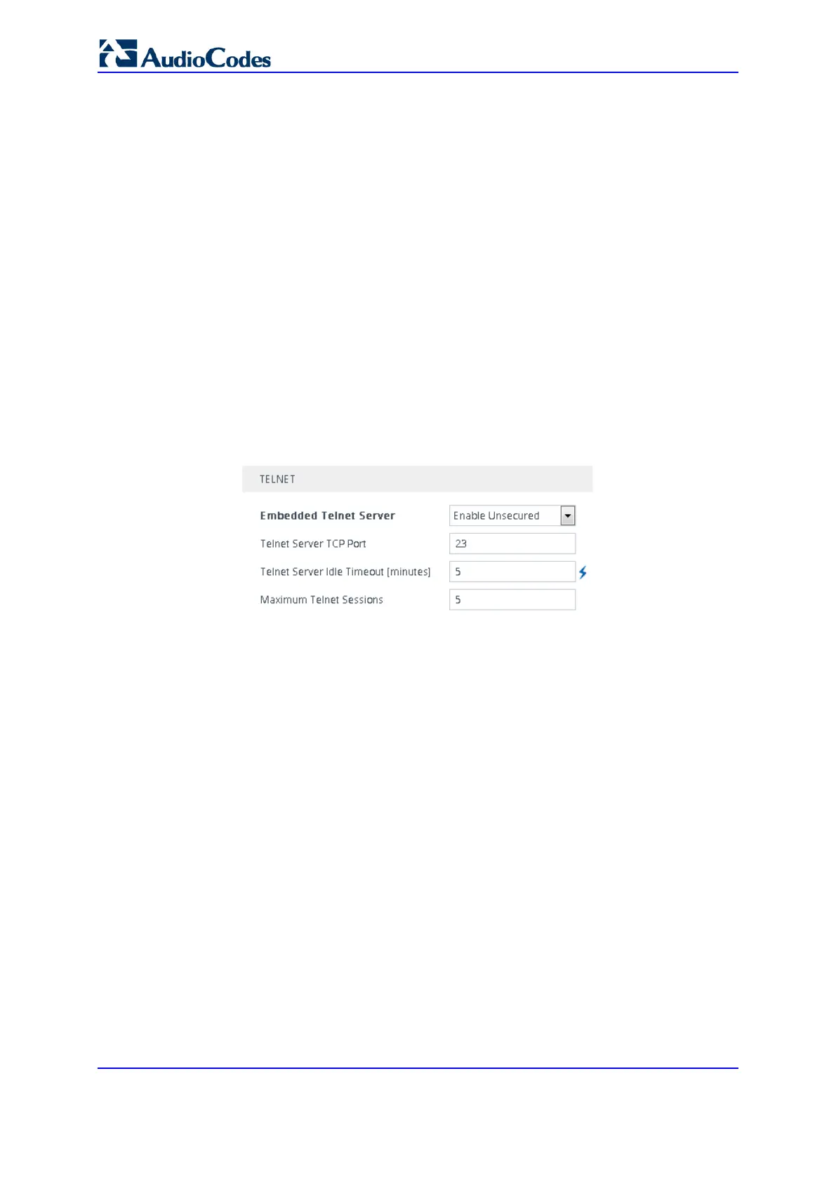 • 'Telnet Server Idle Timeout': Enter the duration of inactivity in the Telnet session