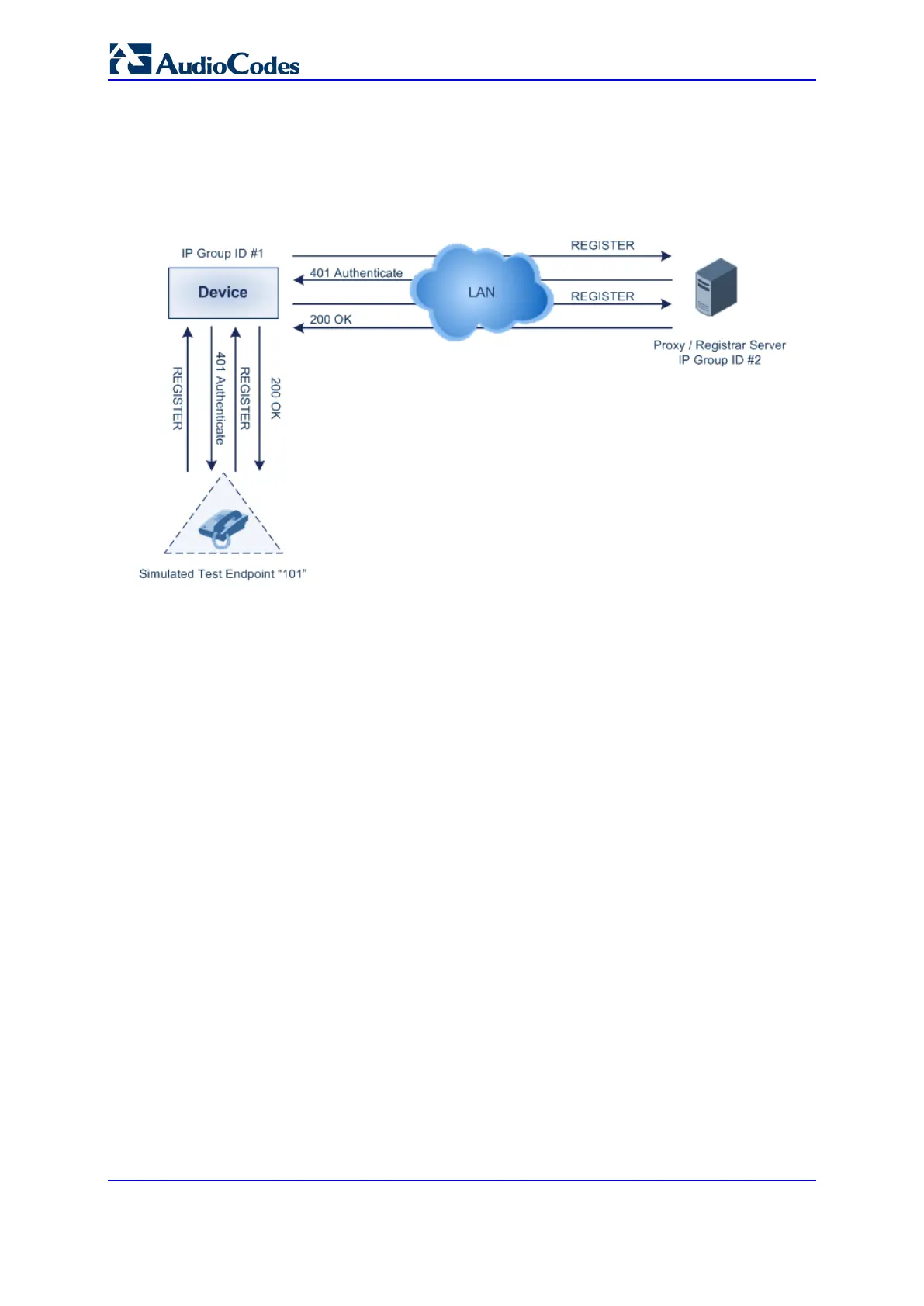 Registration Test Call Scenario: This example describes the configuration for testing
