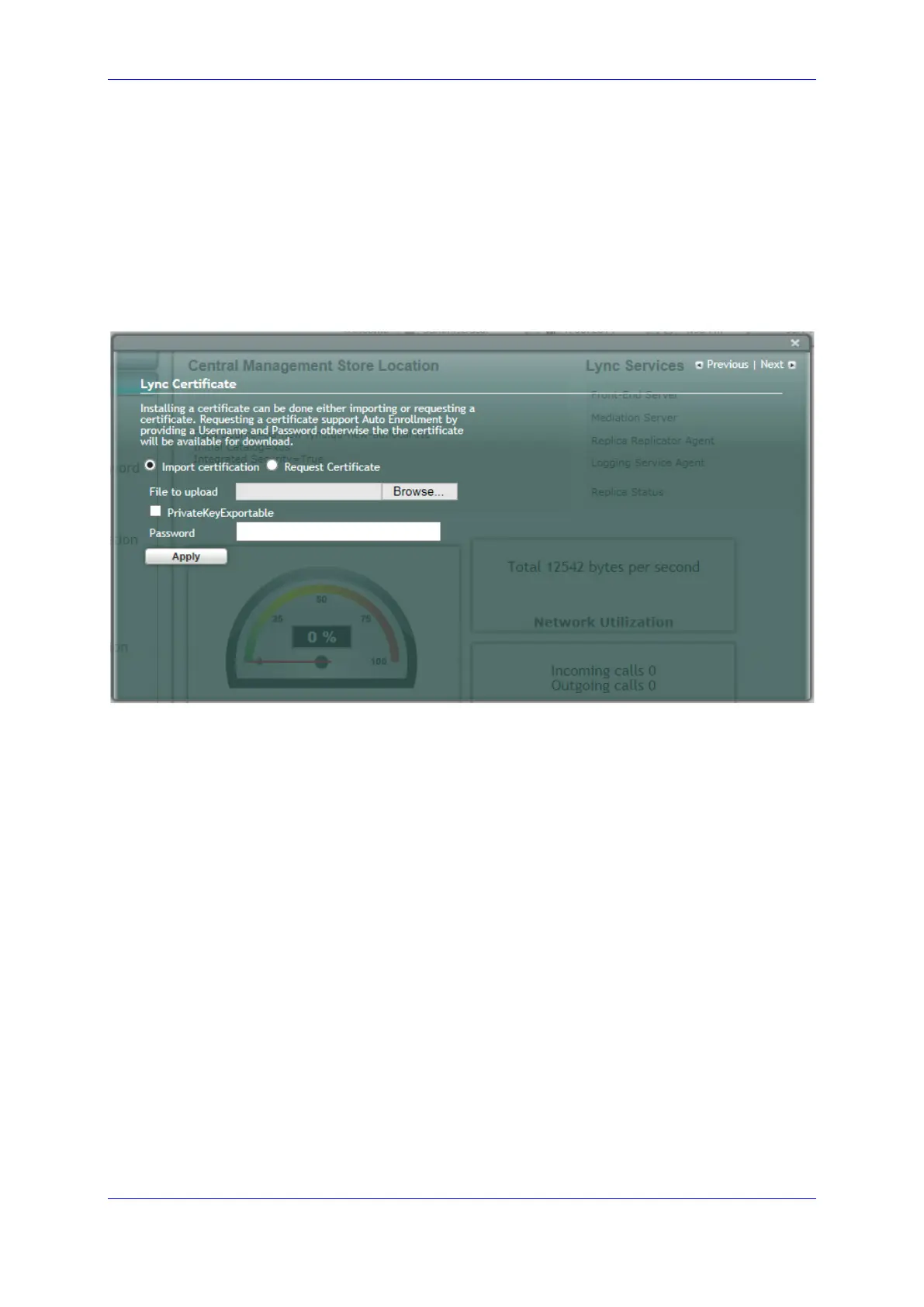 Select the Setup tab, and then select the 'Lync Certificate' check box; the following