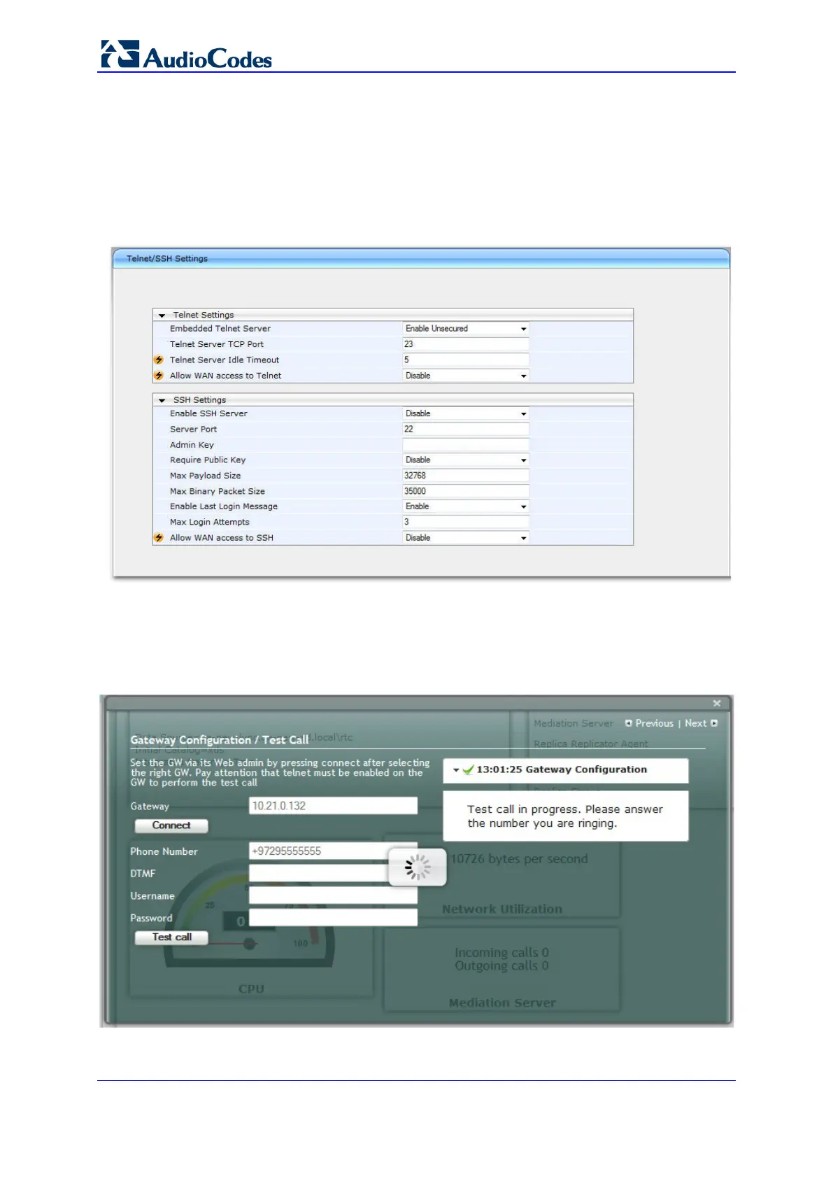 7. Establish a telnet session (enable Telnet on the PSTN Gateway):