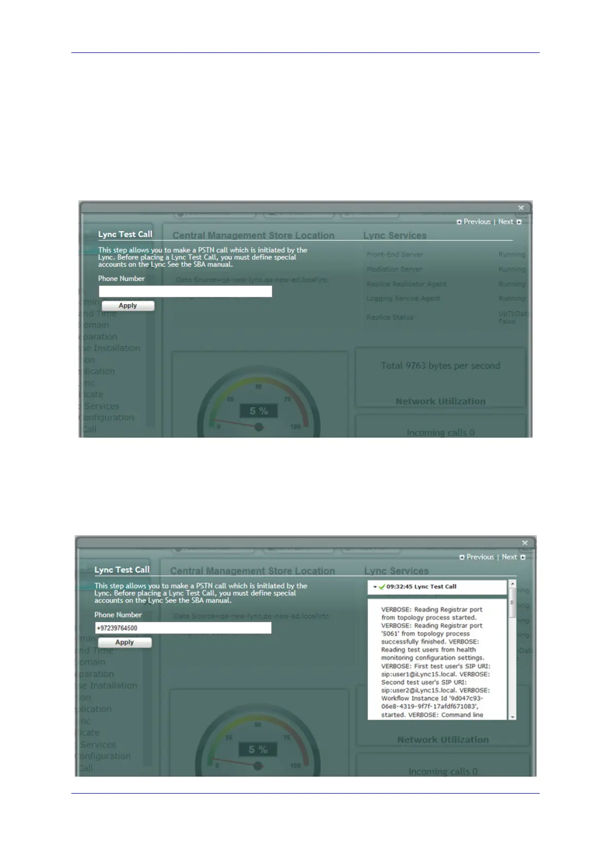 1. Select the Setup tab, and then select the Lync Test Call option; the Lync Test Call