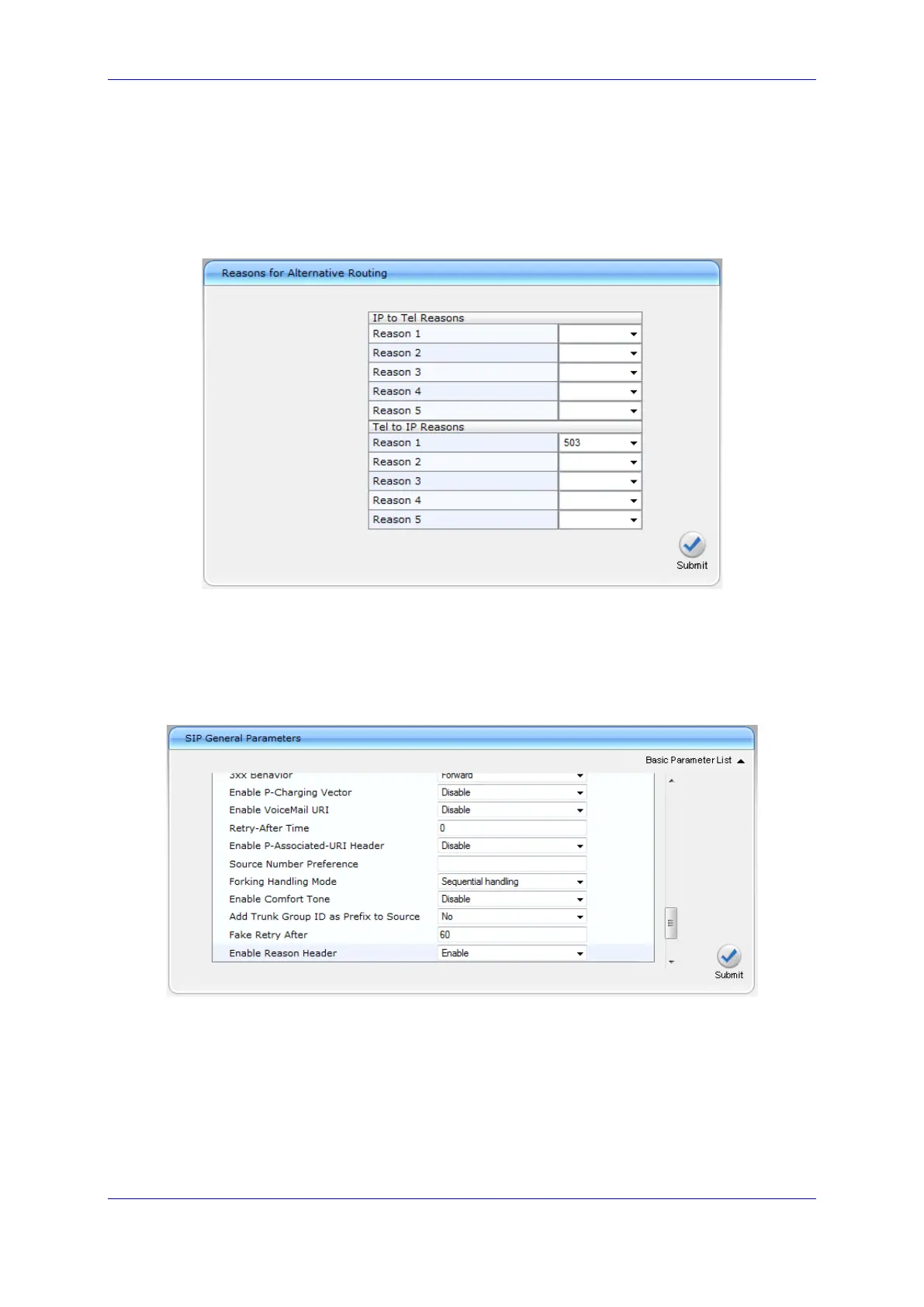 a. Open the 'Reasons for Alternative Routing' page (Configuration tab > VoIP