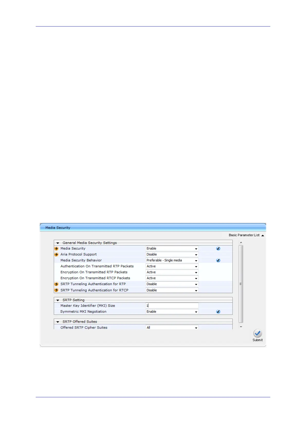 1. Open the Media Security page (Configuration tab > VoIP menu > Media > Media