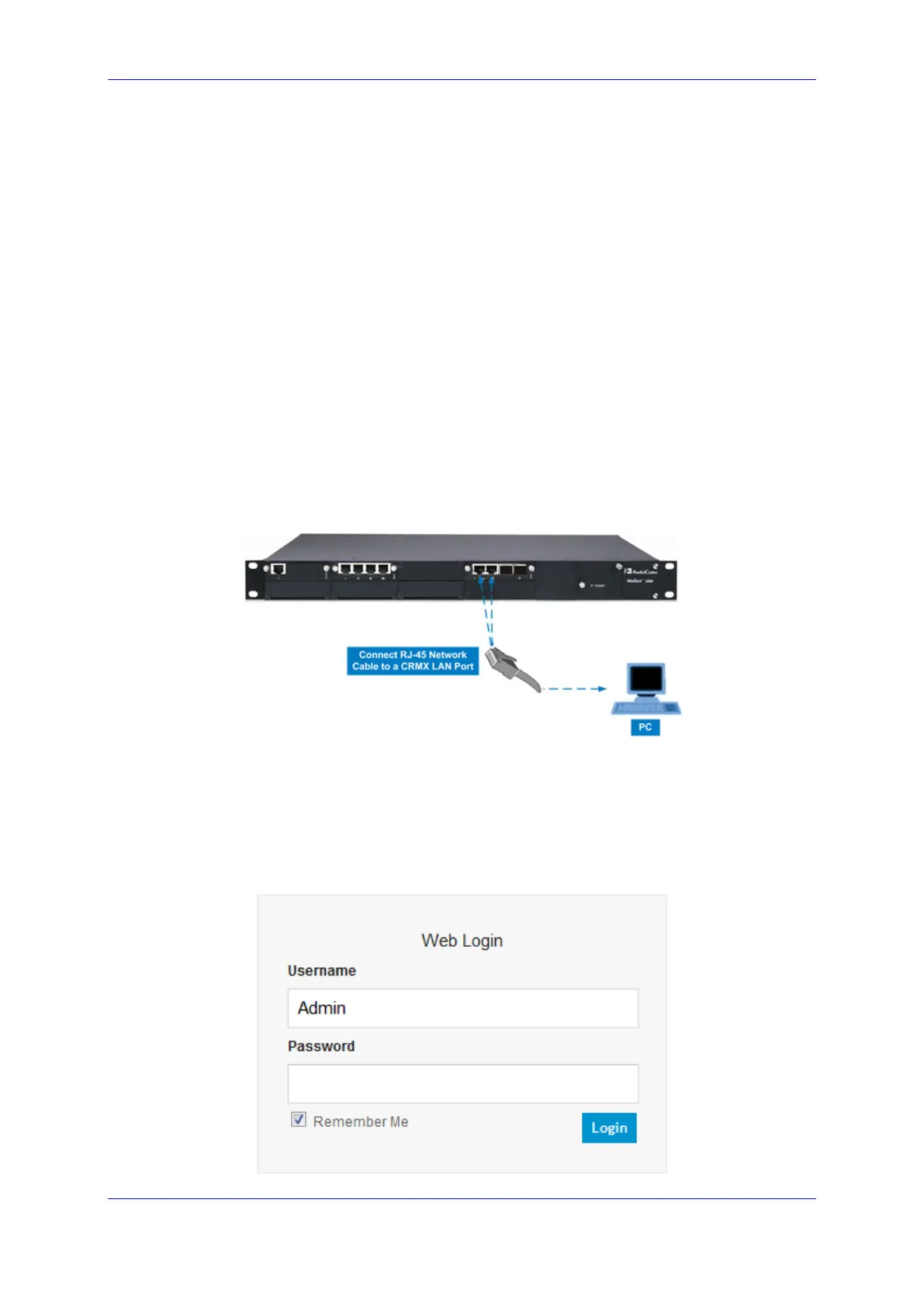 1. Connect one of the LAN ports on the CRMX module on the front panel of the device