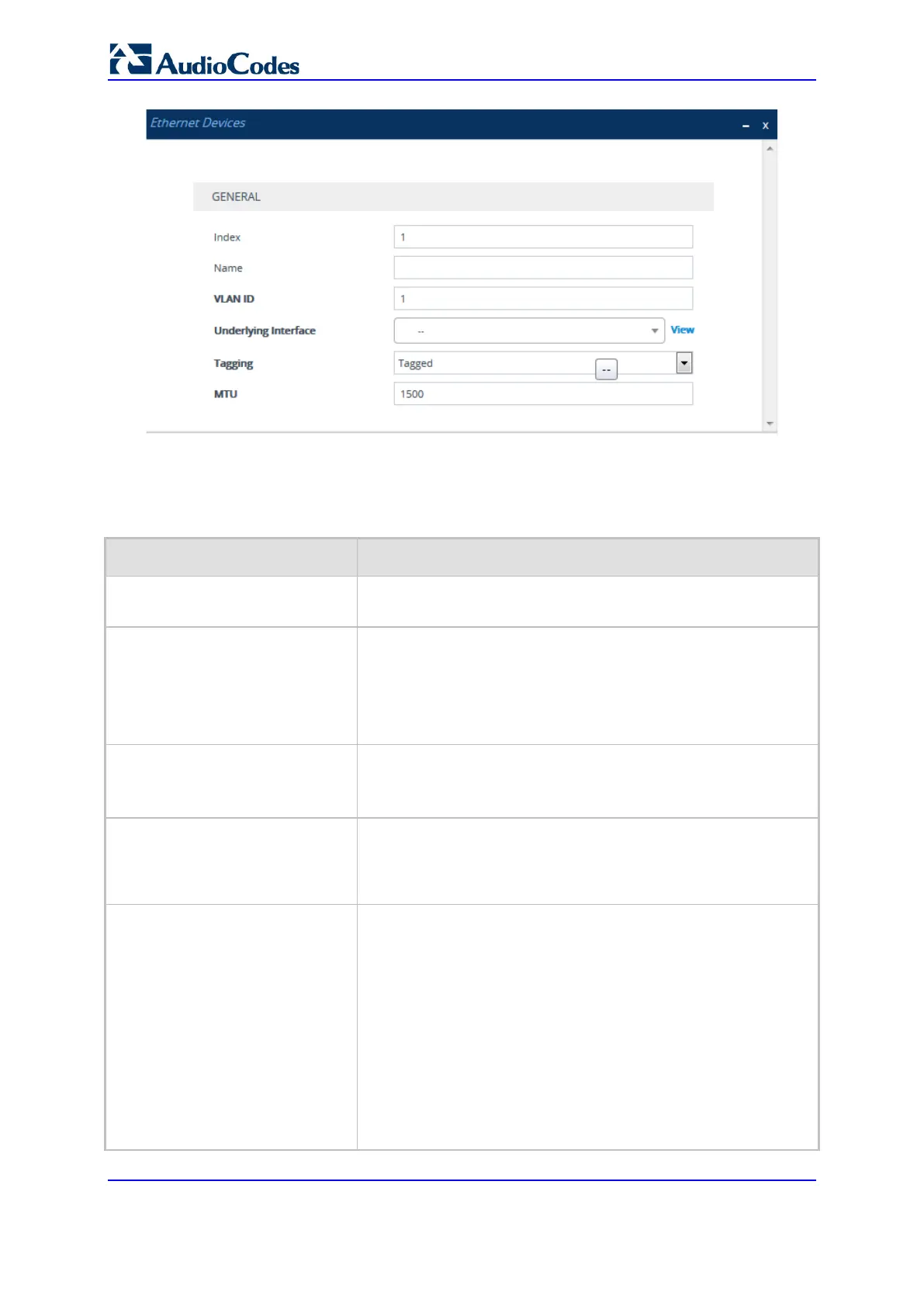 [1] Tagged = (Default for new Ethernet Devices) The Ethernet