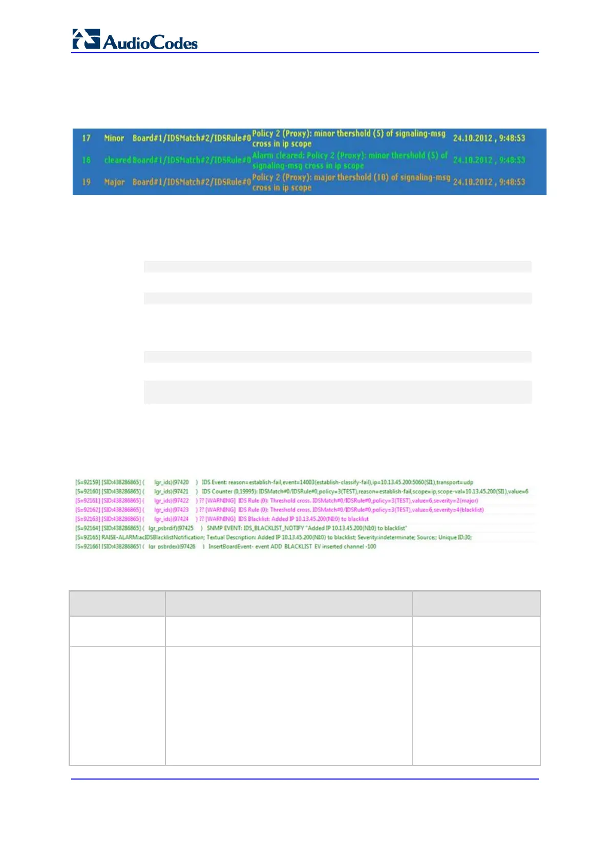 Figure 13-9: Syslog Message Example with IDS Alarms and Notifications