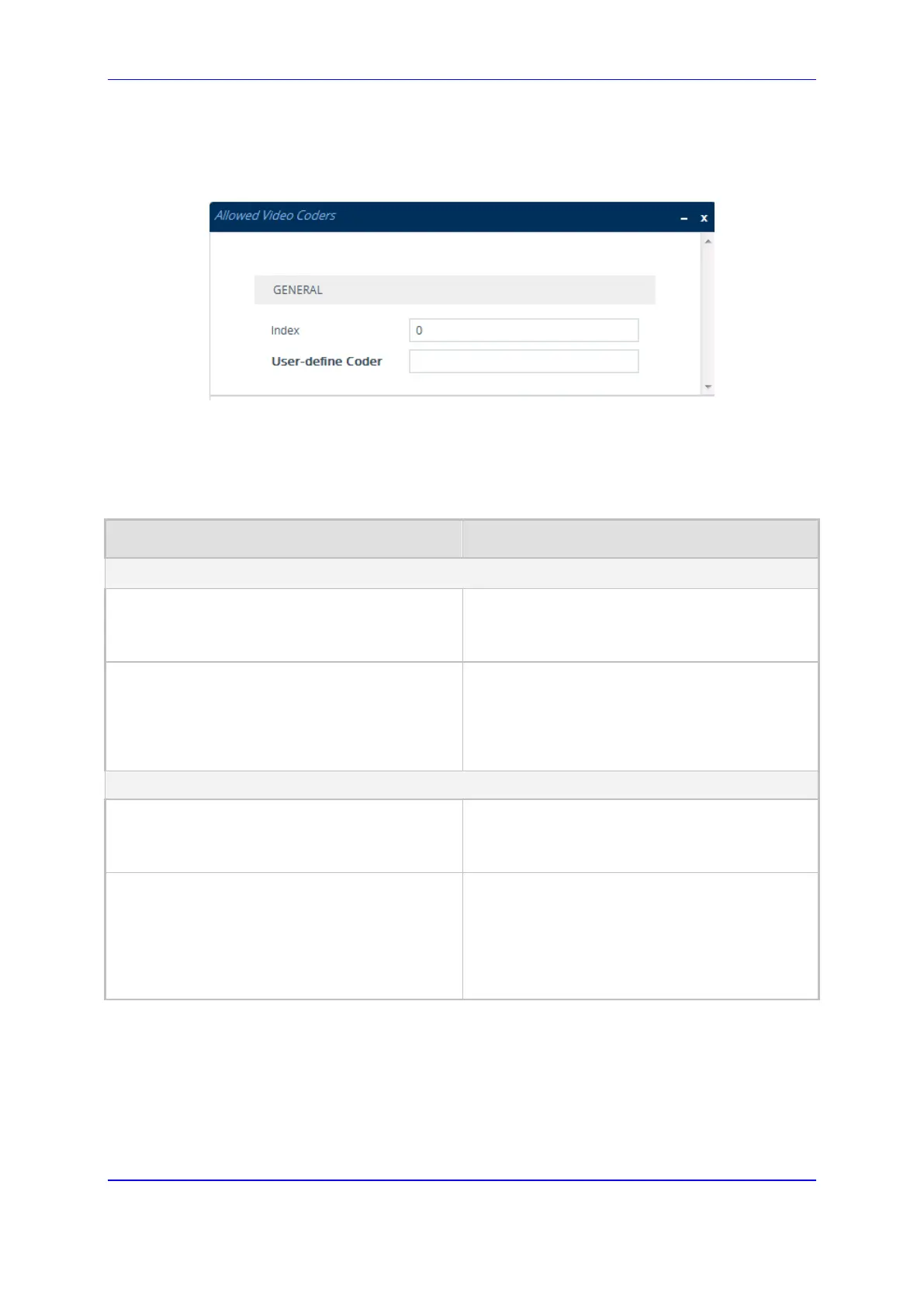 Table  20-4: Allowed Video Coders Groups and Allowed Video Coders Tables Parameter