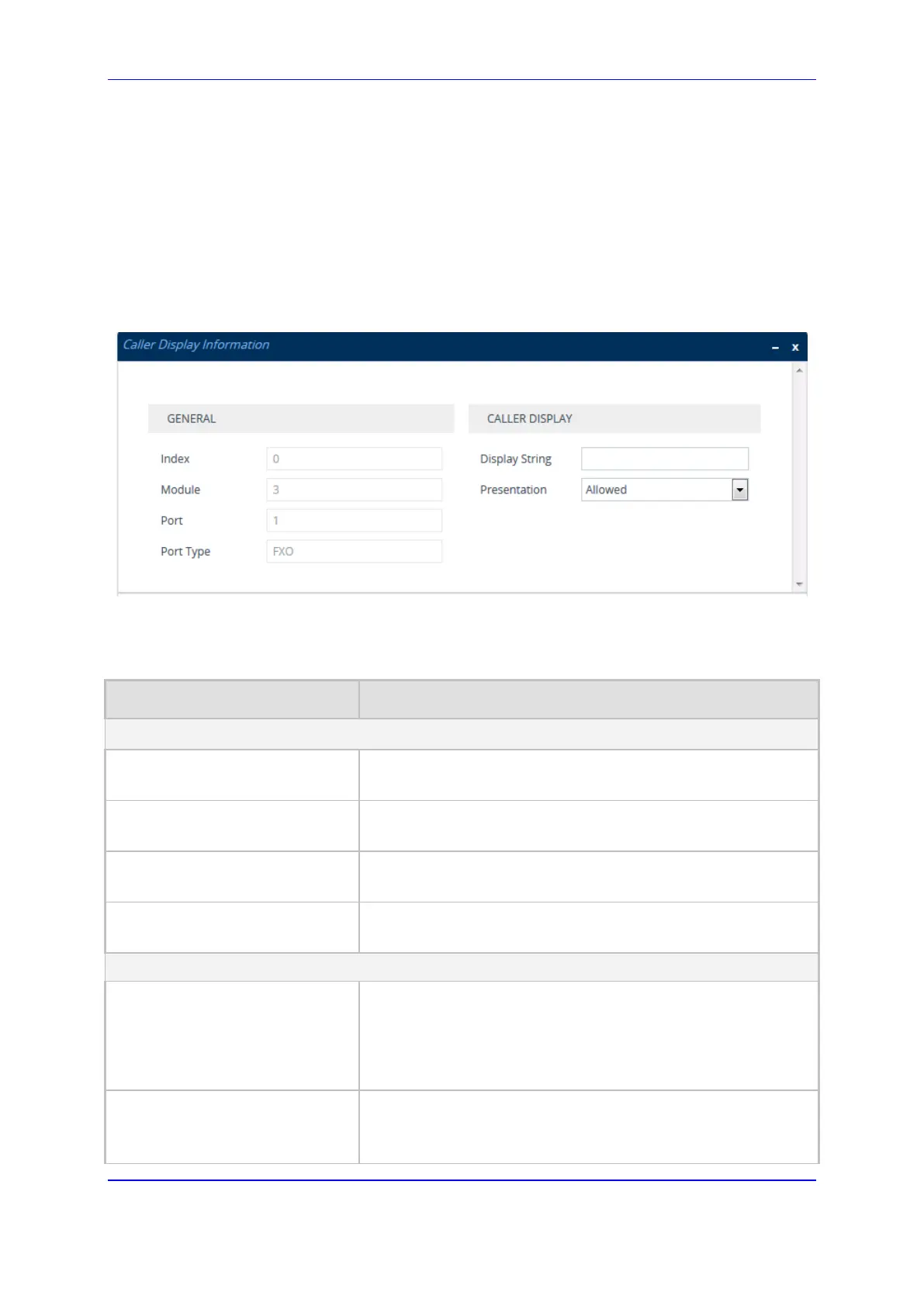 Table 28-3: Caller Display Information Table Parameter Descriptions