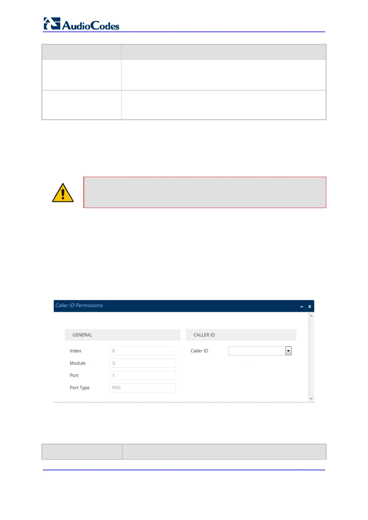 Table 28-5: Caller ID Permissions Table Parameter Descriptions