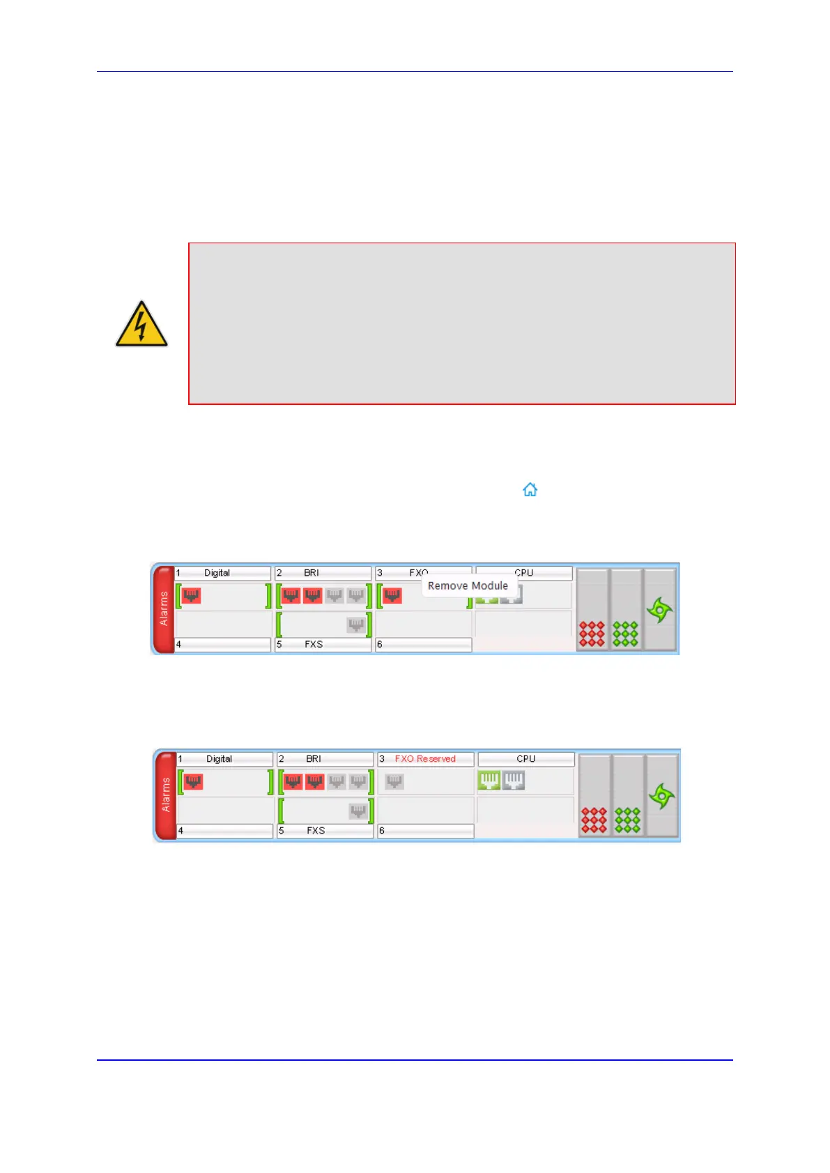physical removal and insertion of the modules. Therefore, when you replace a module, you