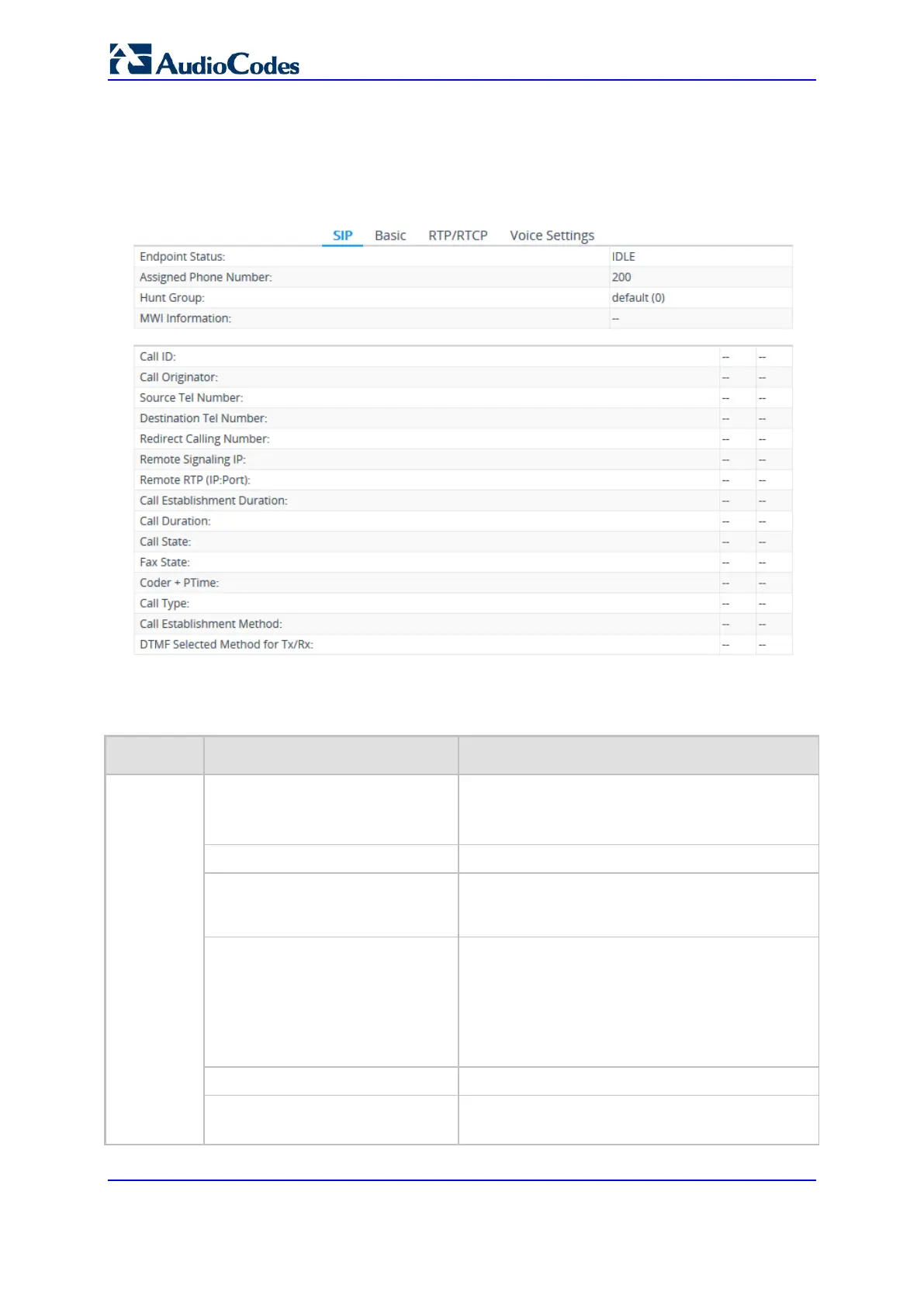 4. To view additional channel information, click the required tab - SIP, RTP/RTCP, and