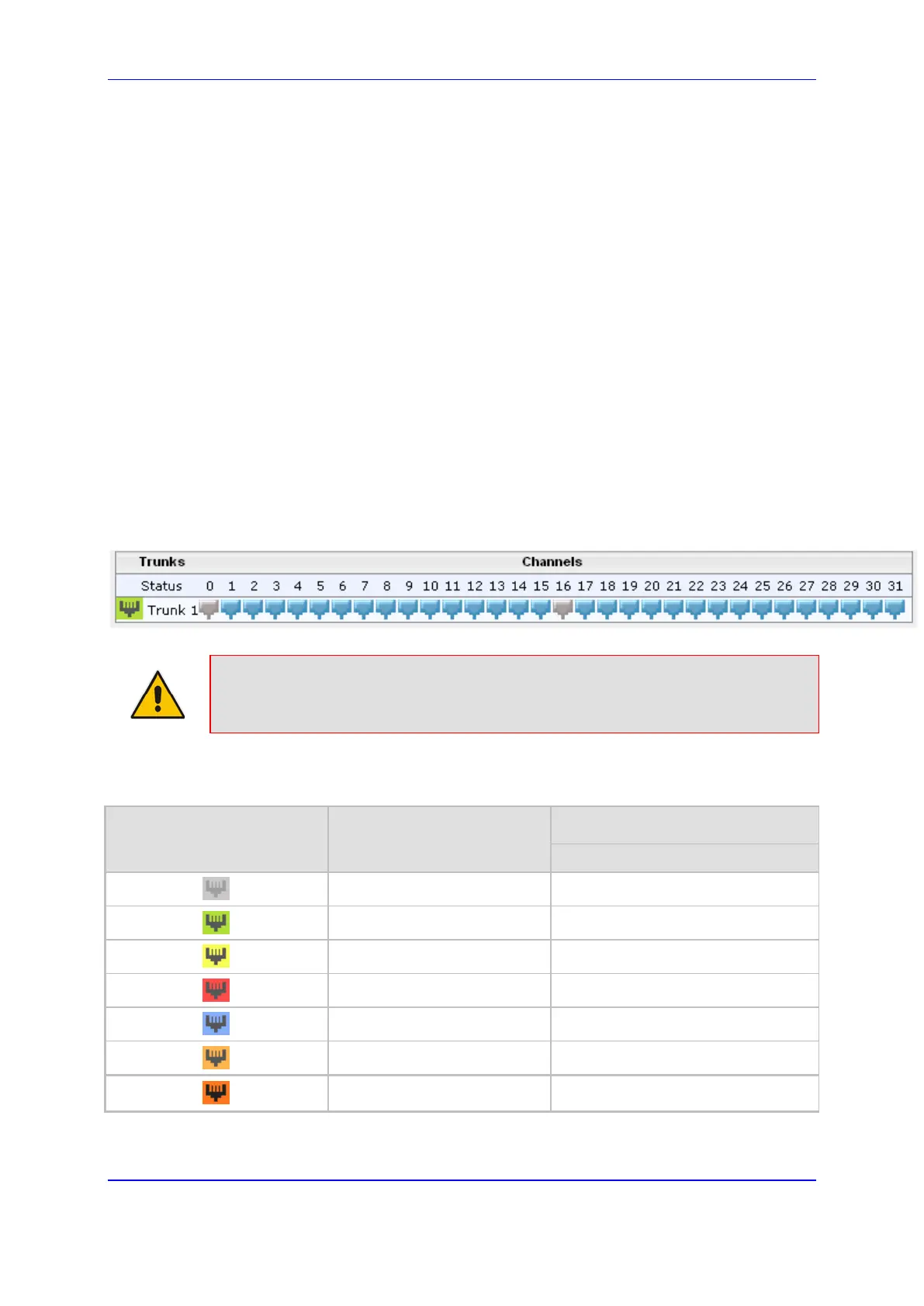 The status of the trunks is depicted by color-coded icons, as described in the table below: