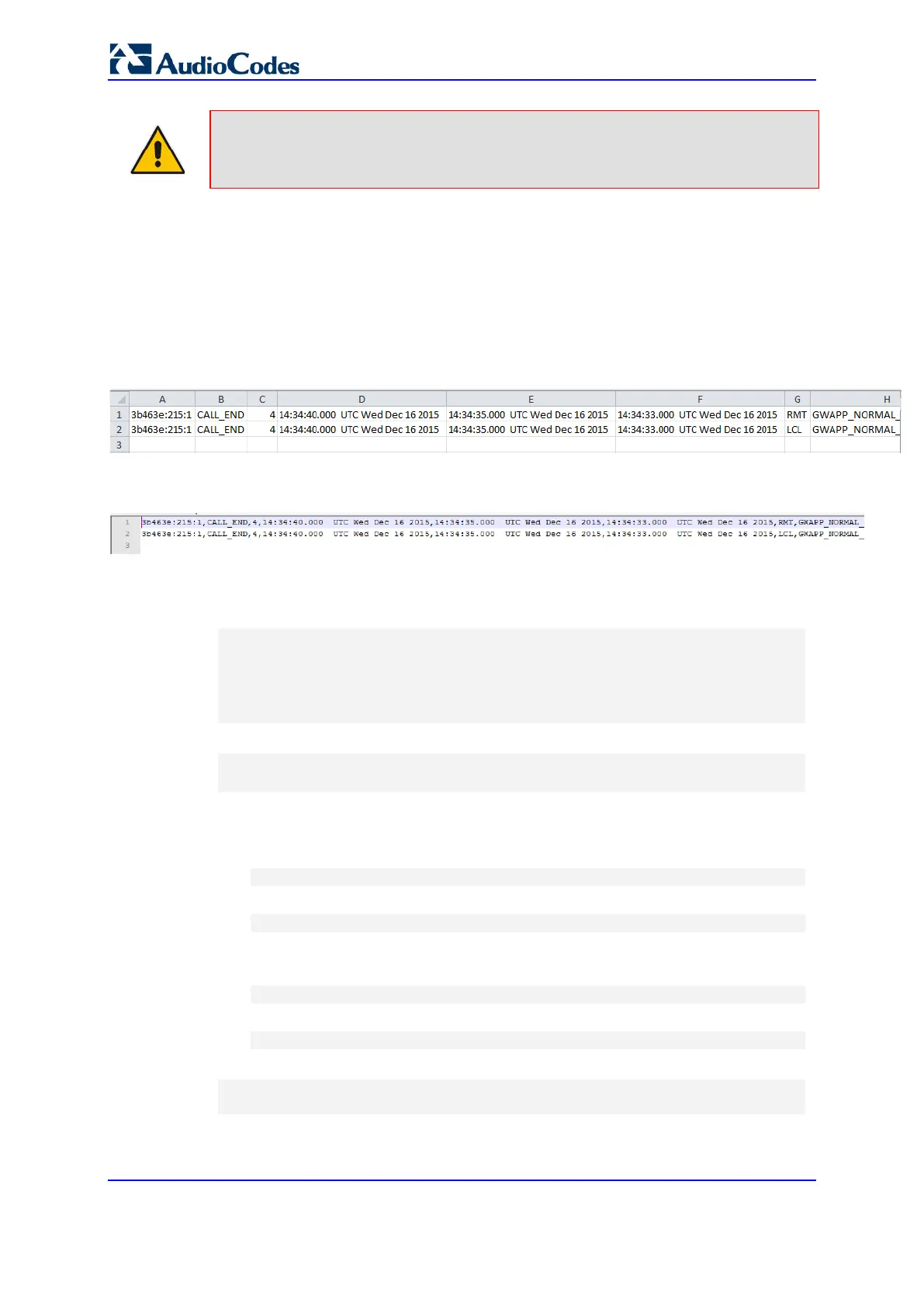 The locally stored CDRs are saved in a comma-separated values file (*.csv), where each