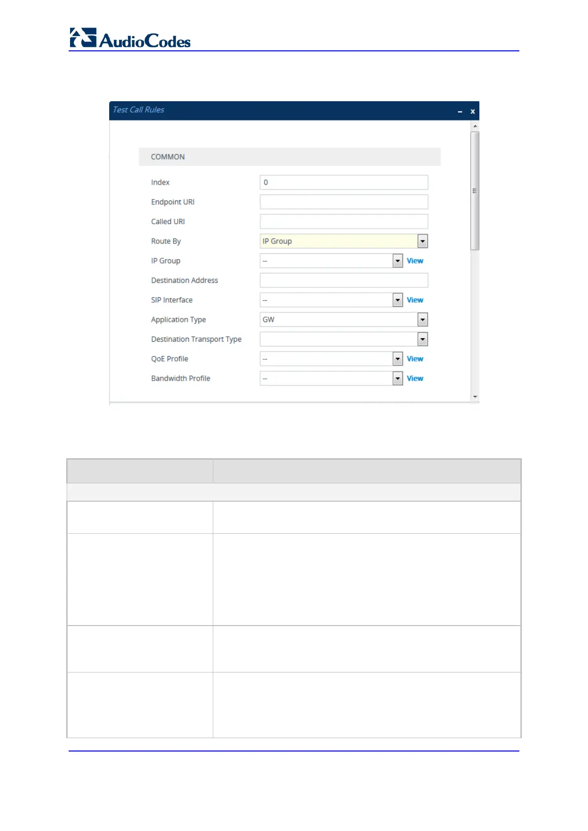 Table 63-1: Test Call Rules Table Parameter Descriptions