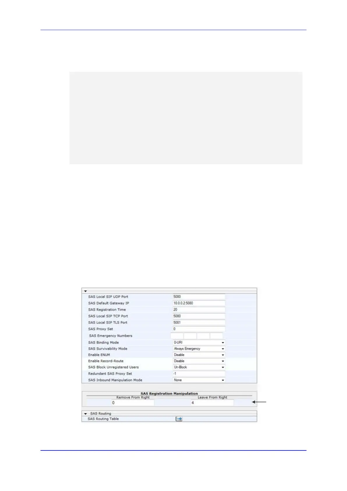 1. Open the SAS Configuration page (Configuration tab > VoIP menu > SAS > Stand