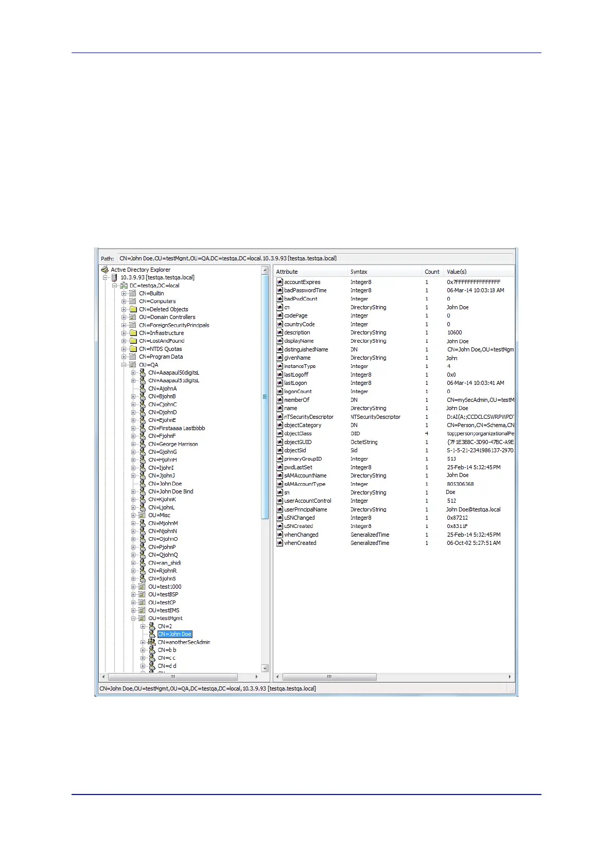 DN (base path): OU=testMgmt,OU=QA,DC=testqa,DC=local. The DN path to search
