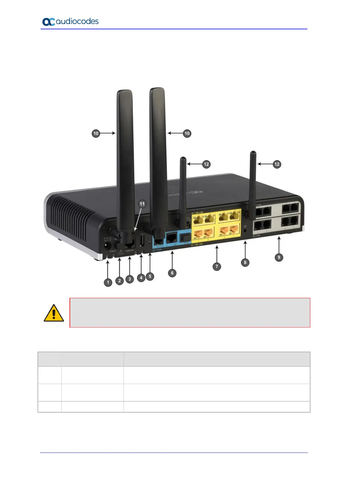 The device's rear panel is shown in the figure below and described in the subsequent table.
