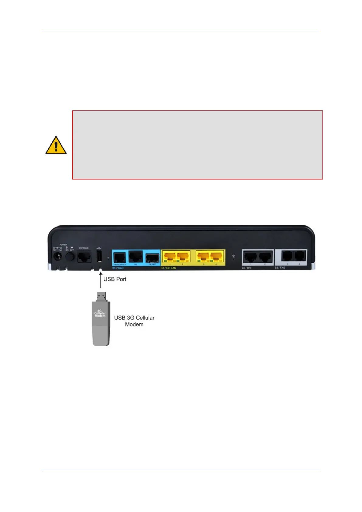 The device supports a 3G or 4G cellular WAN interface using a USB-based 3G/4G cellular