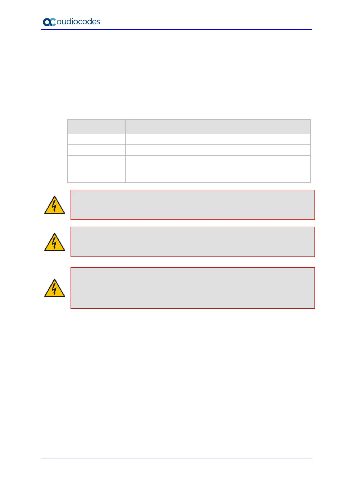 and do not plug it into the electrical wall socket; contact AudioCodes for a Return