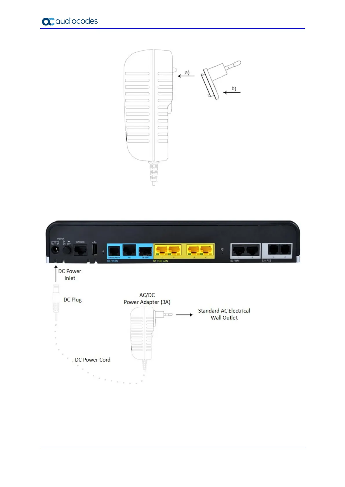 Figure 6-22: Cabling to Power with 3A AC/DC Power Adapter