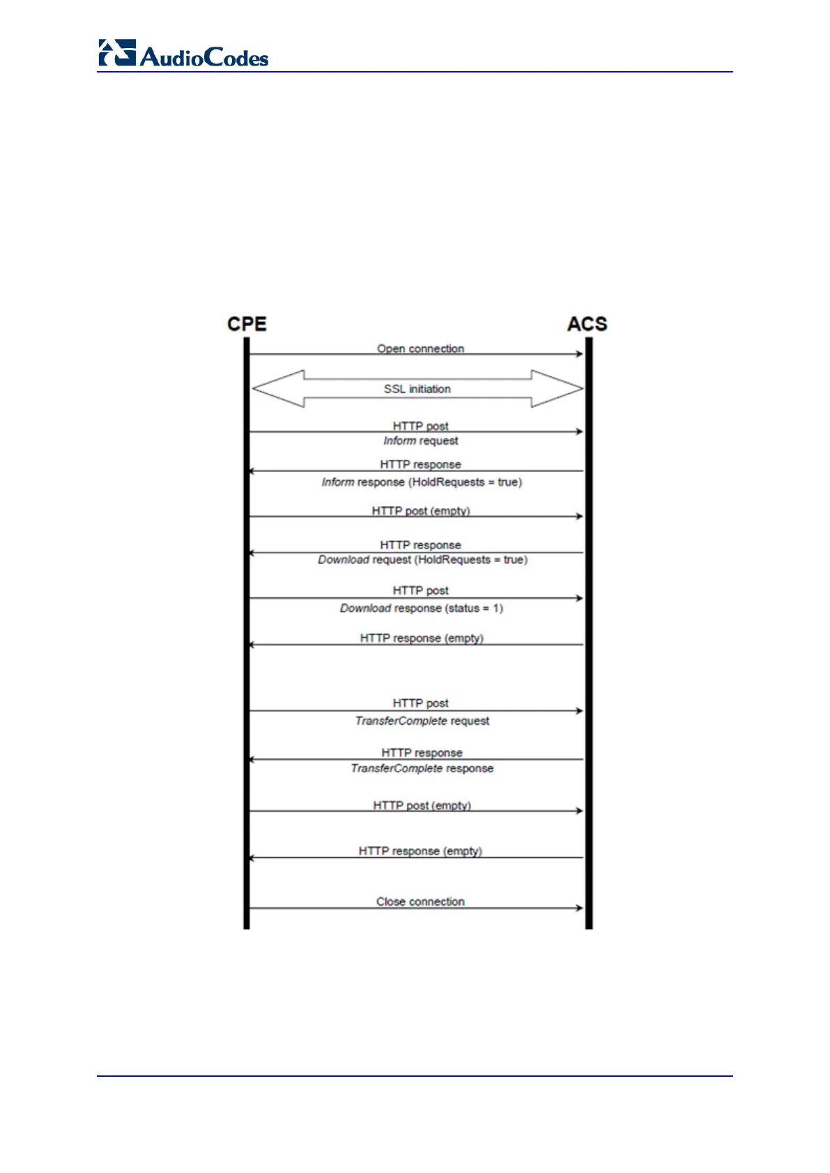 • Upload: Used by the ACS to cause the CPE to upload (to the ACS) the following
