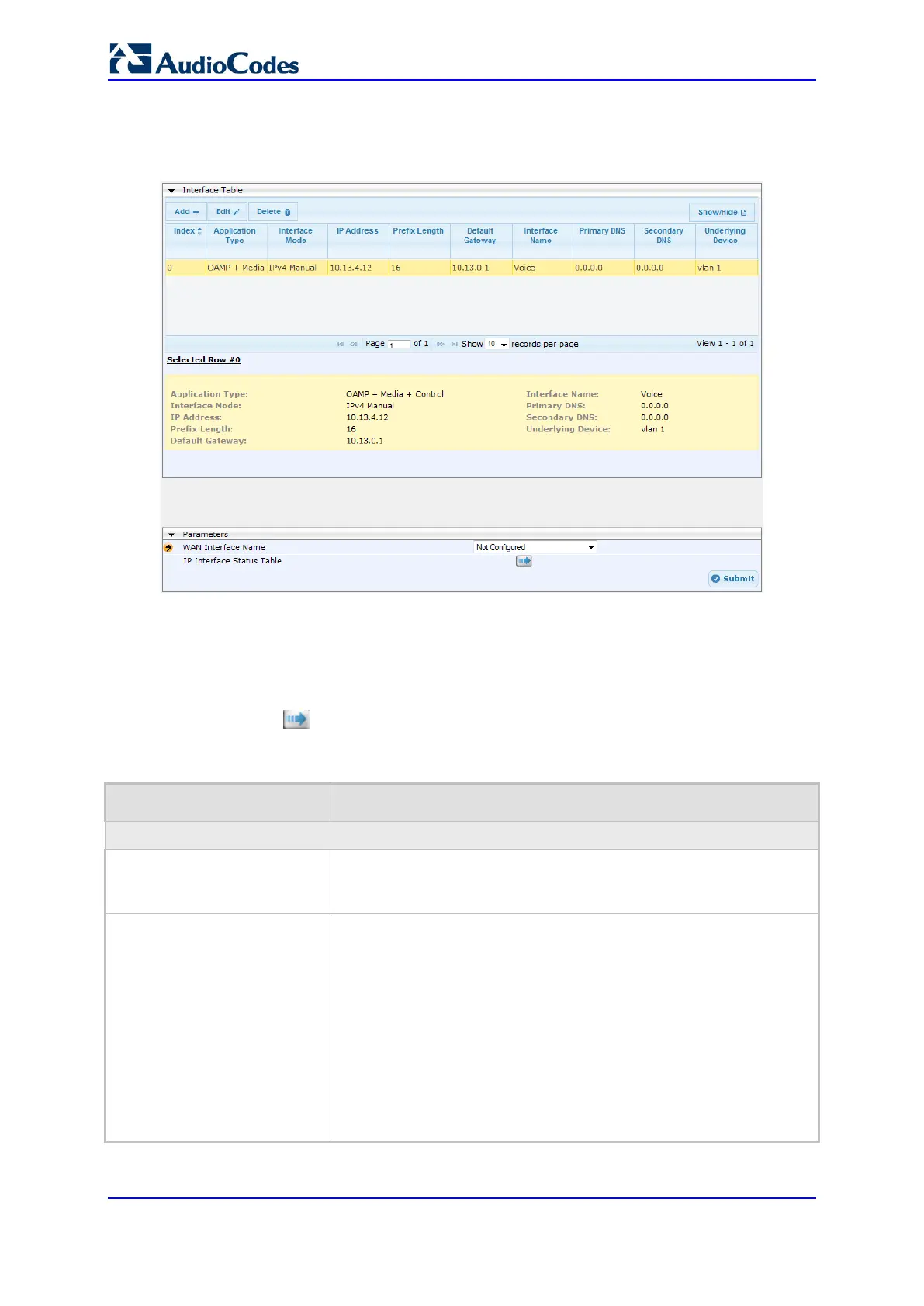 1. Open the Interface Table page (Configuration tab > VoIP menu > Network > IP