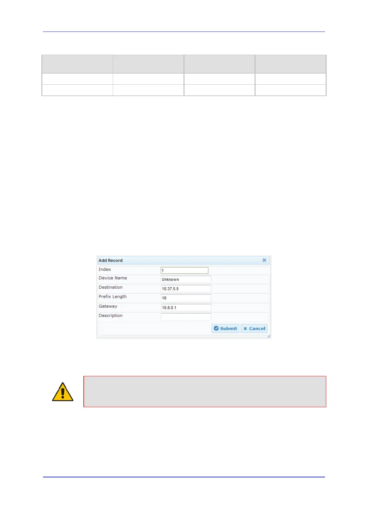 can also configure this using the table ini file parameter, StaticRouteTable or the CLI