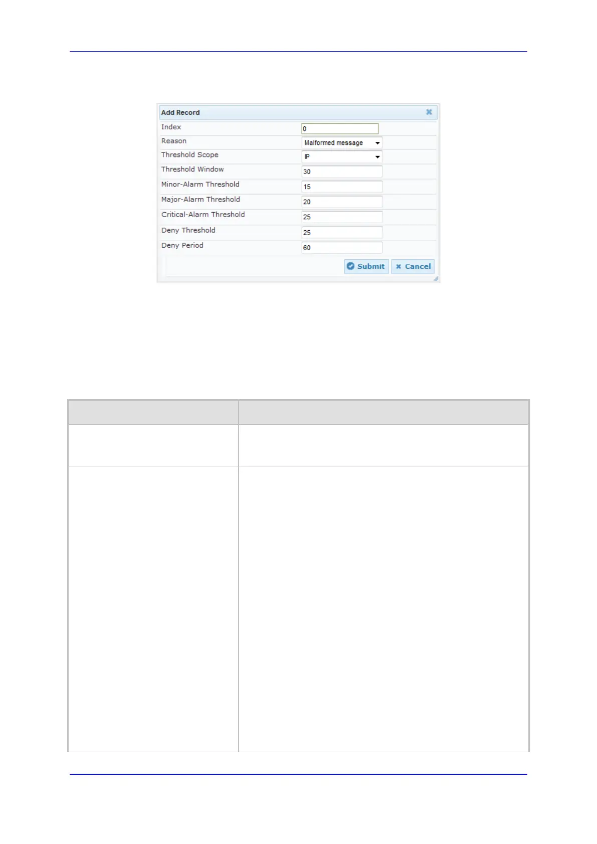 The figure above shows a configuration example. If 15 malformed SIP messages are