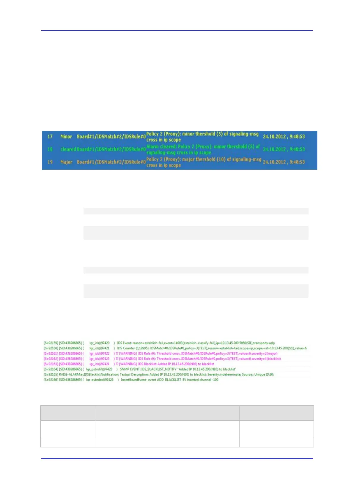 Figure 16-9: Syslog Message Example with IDS Alarms and Notifications