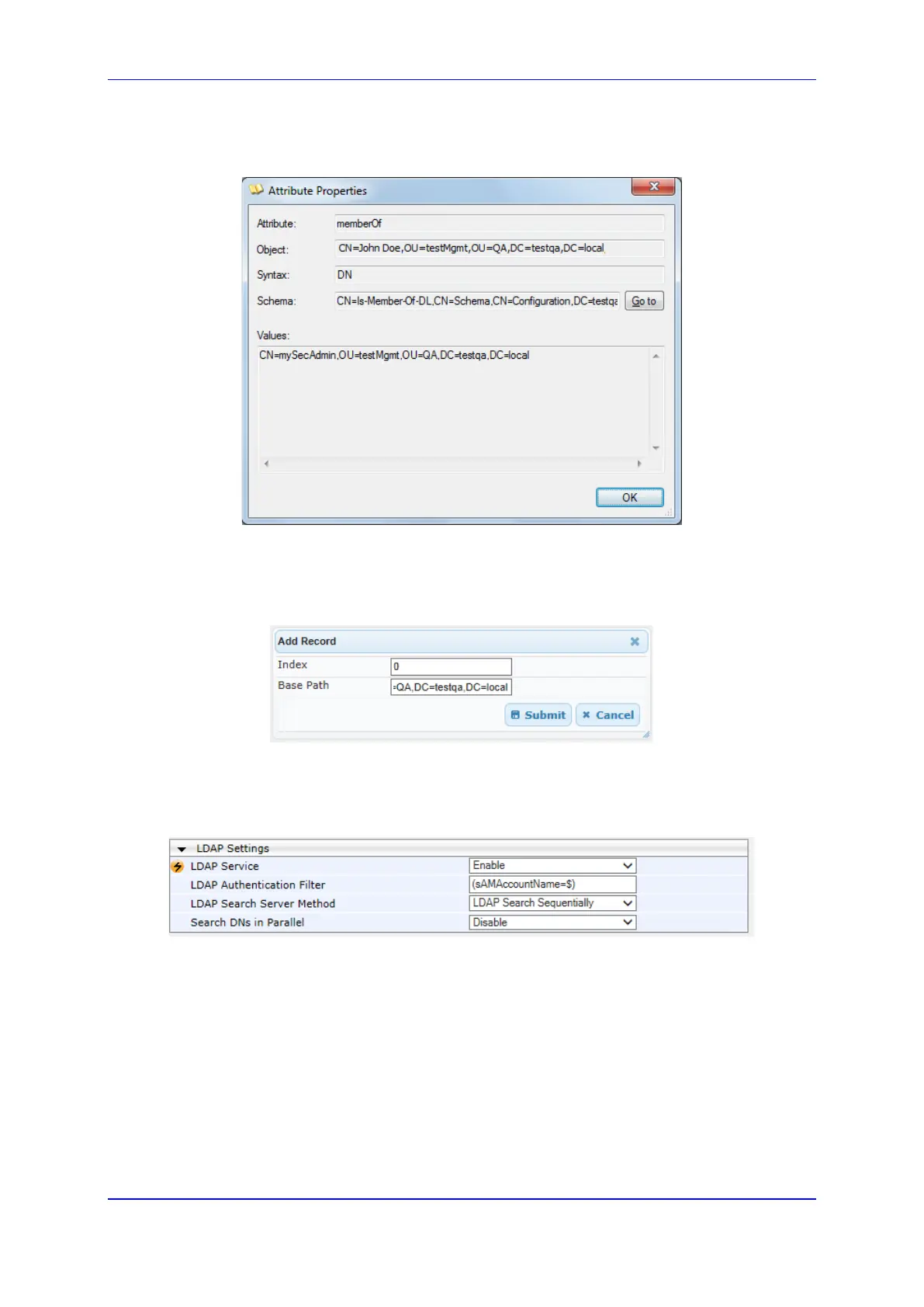 The DN is configured in the LDAP Configuration table (see ''Configuring LDAP