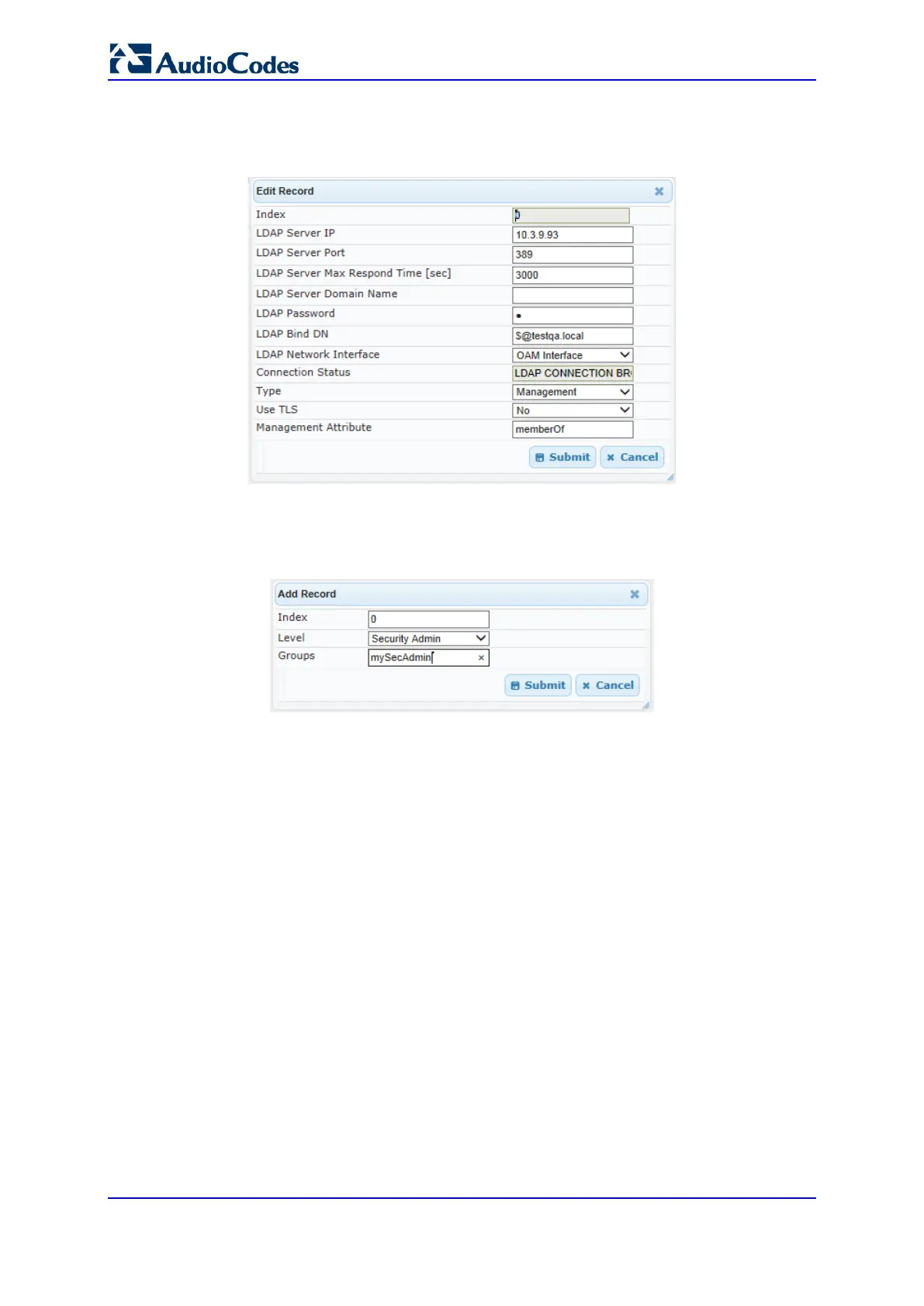 Management LDAP Groups table (see ''Configuring Access Level per Management