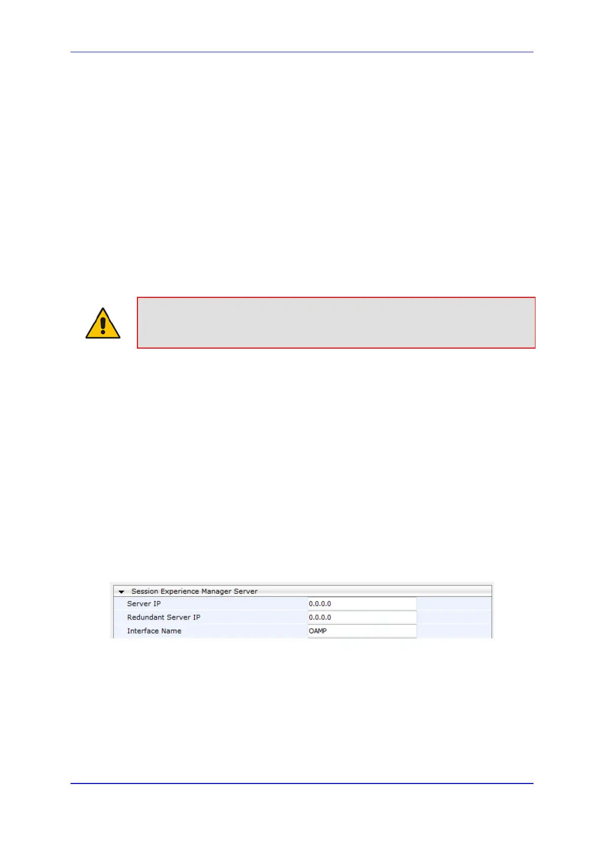 1. Open the Session Experience Manager Server page (Configuration tab > VoIP menu
