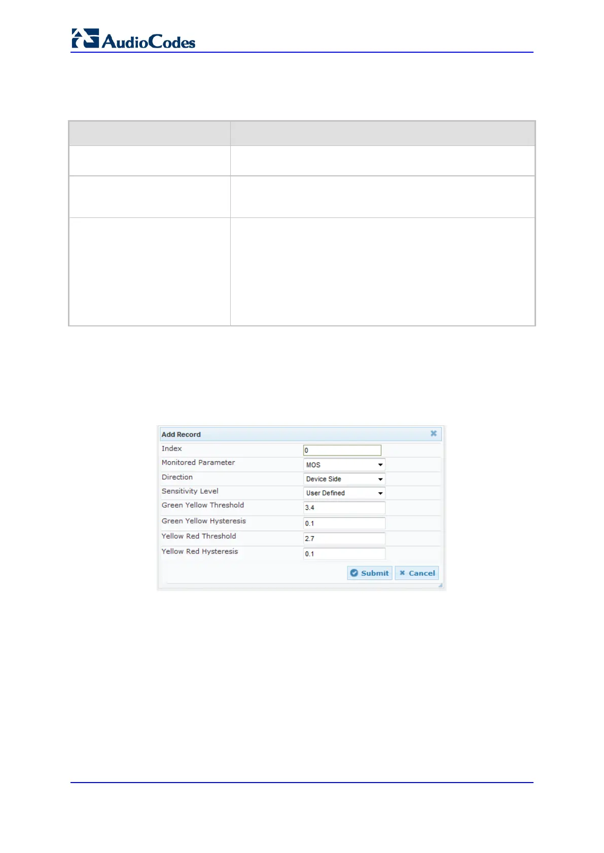 Figure 19-3: Quality of Experience Page - Add Record Dialog Box