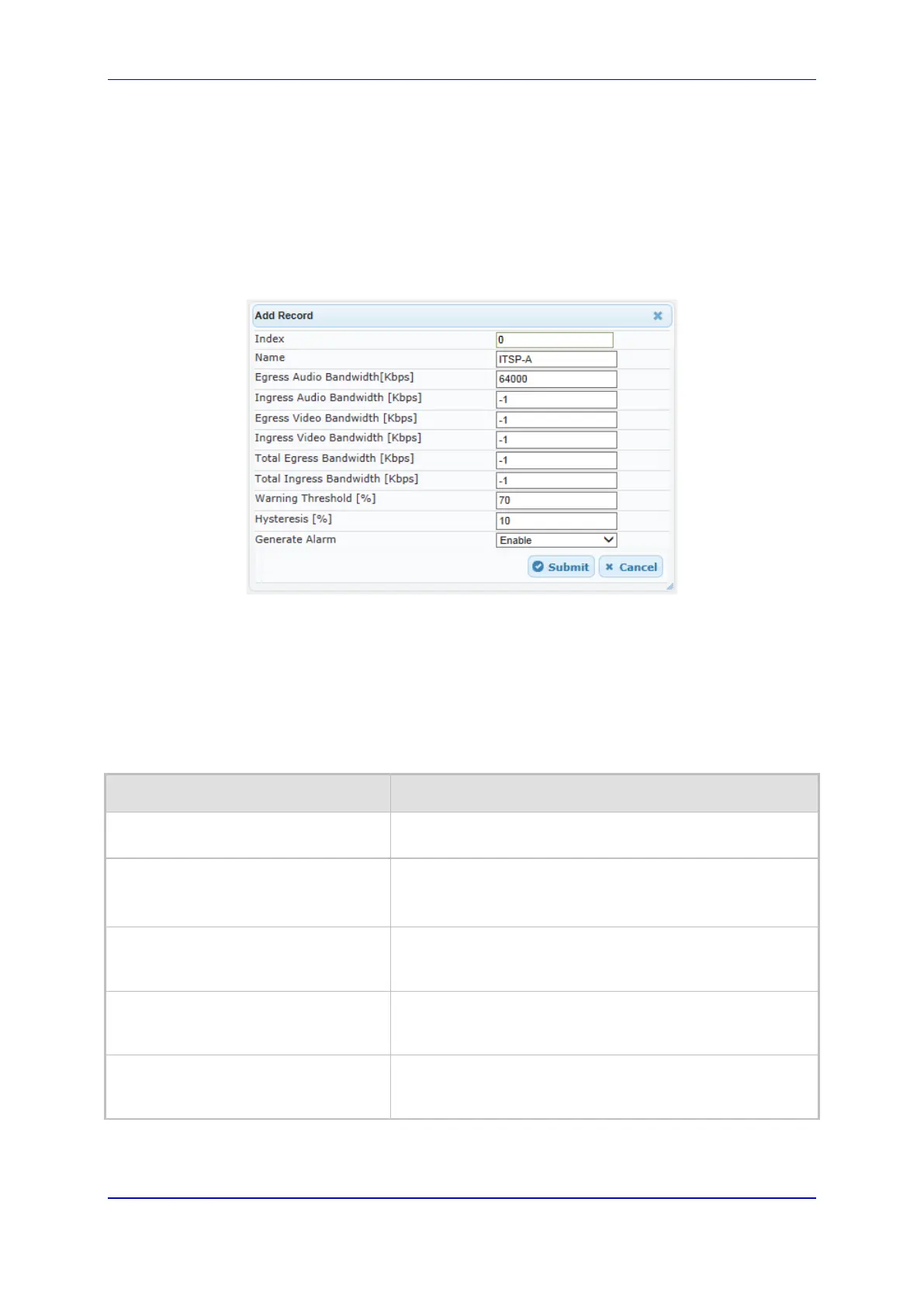 interface. You can also configure Bandwidth Profiles using the table ini file parameter,