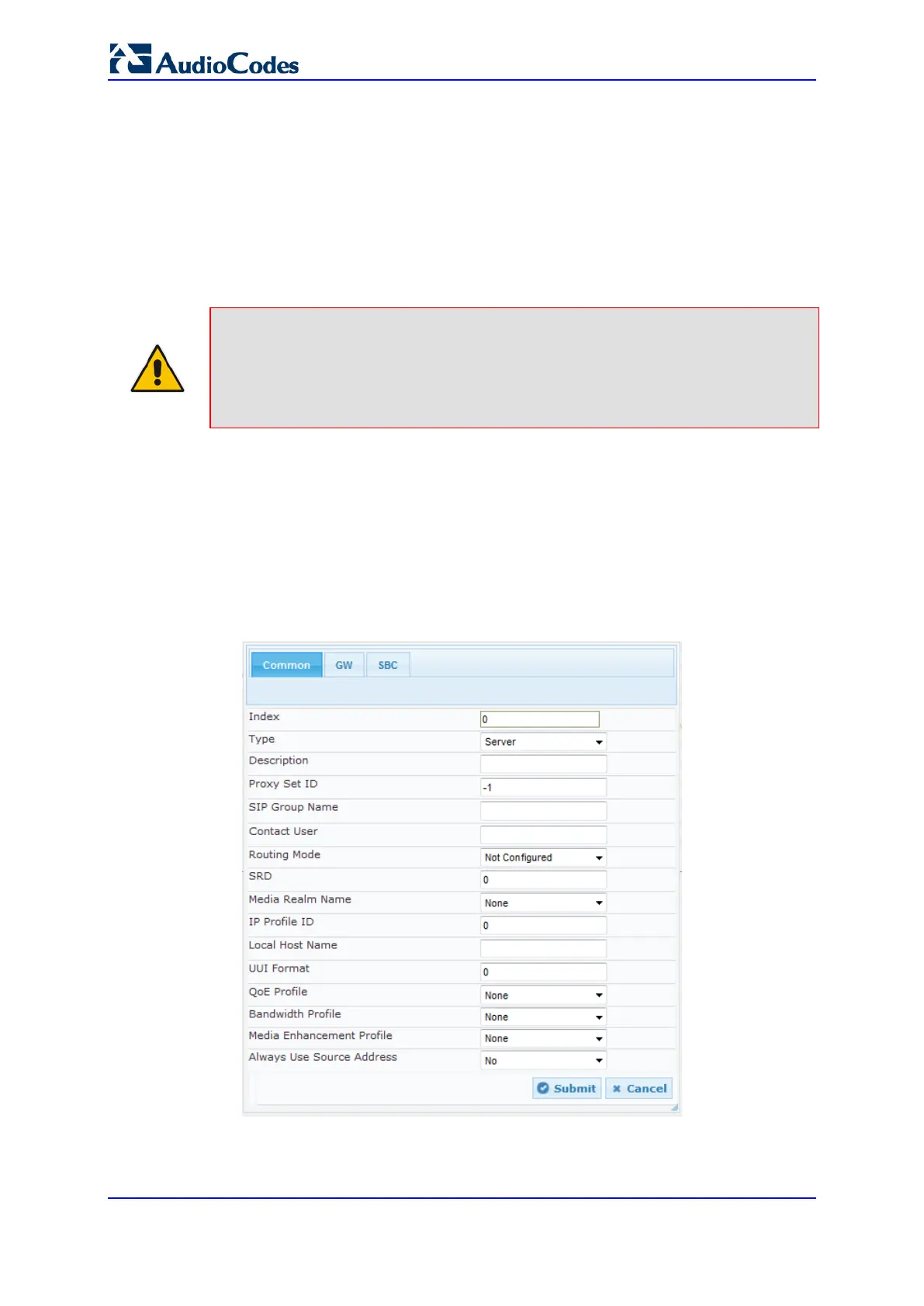 this IP Group. For configuring Bandwidth Profiles, see ''Configuring Bandwidth