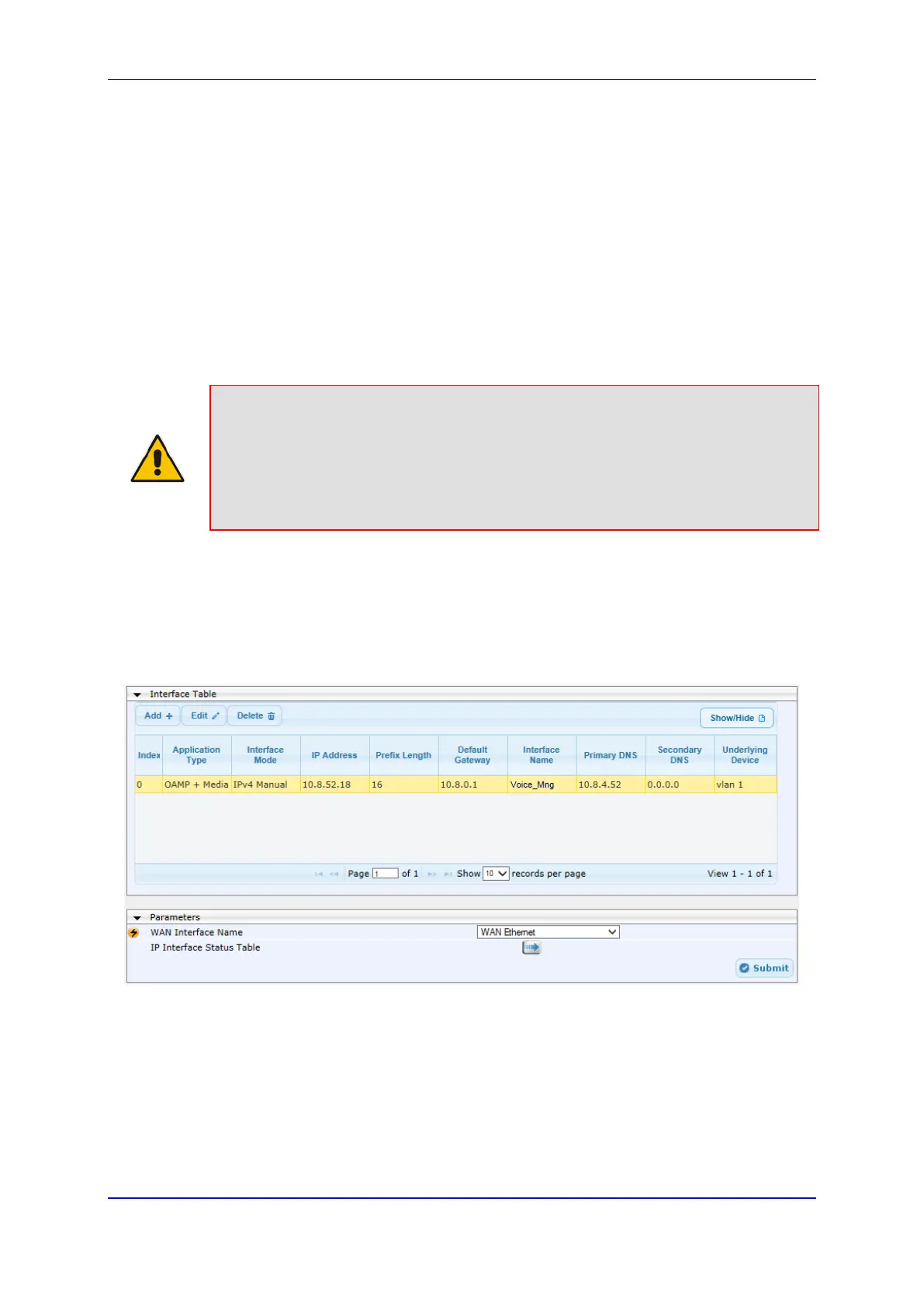a. Open the Interface Table page (Configuration tab > VoIP menu > Network > IP