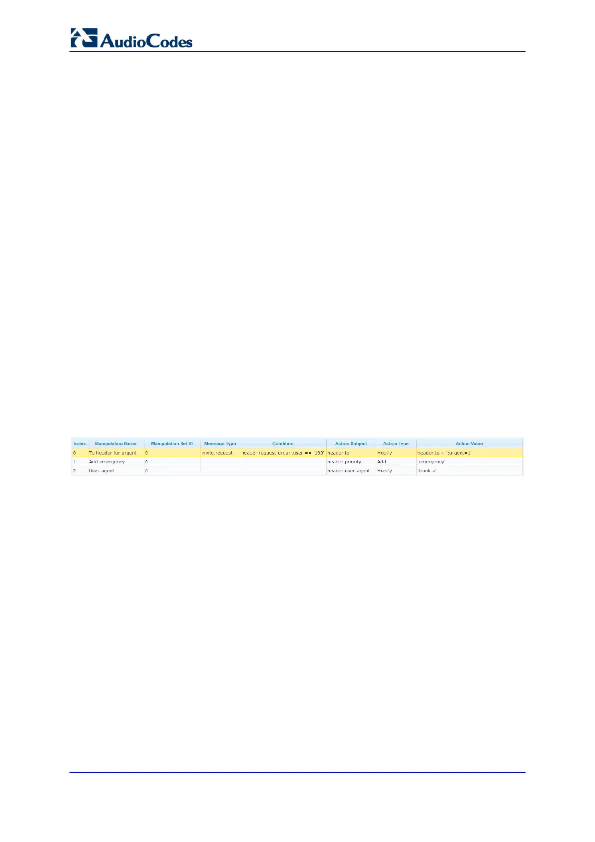 Figure 21-2: Configuration Example of Message Manipulation Rules using Same Condition