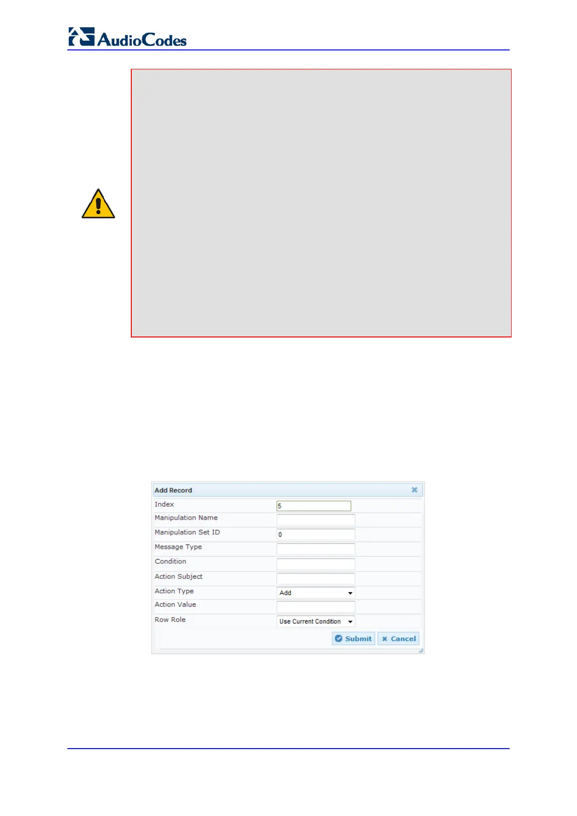 • SIP manipulations do not allow you to remove or add mandatory SIP headers.