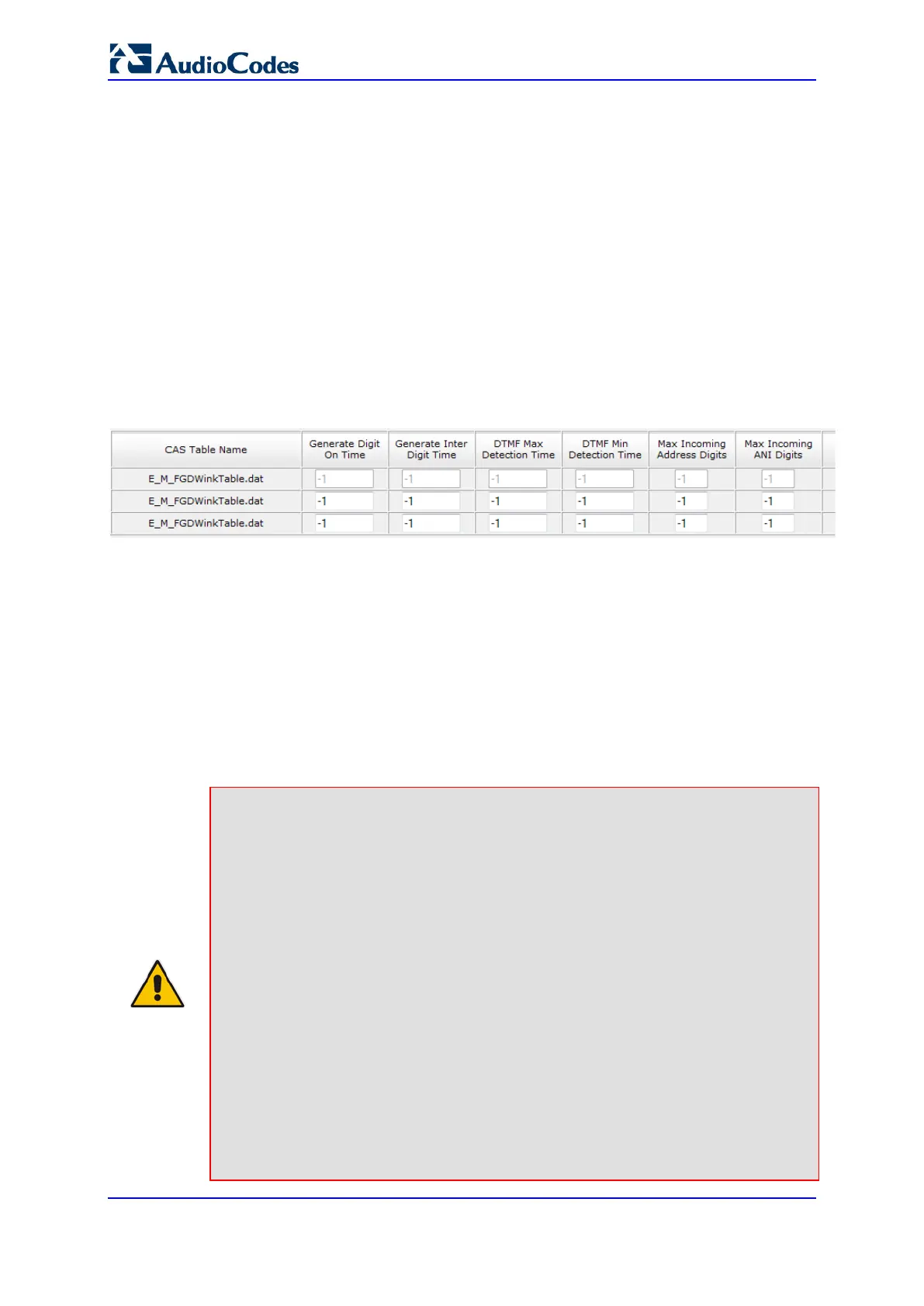 • Field values displaying '-1' indicate CAS default values. In other words, CAS state